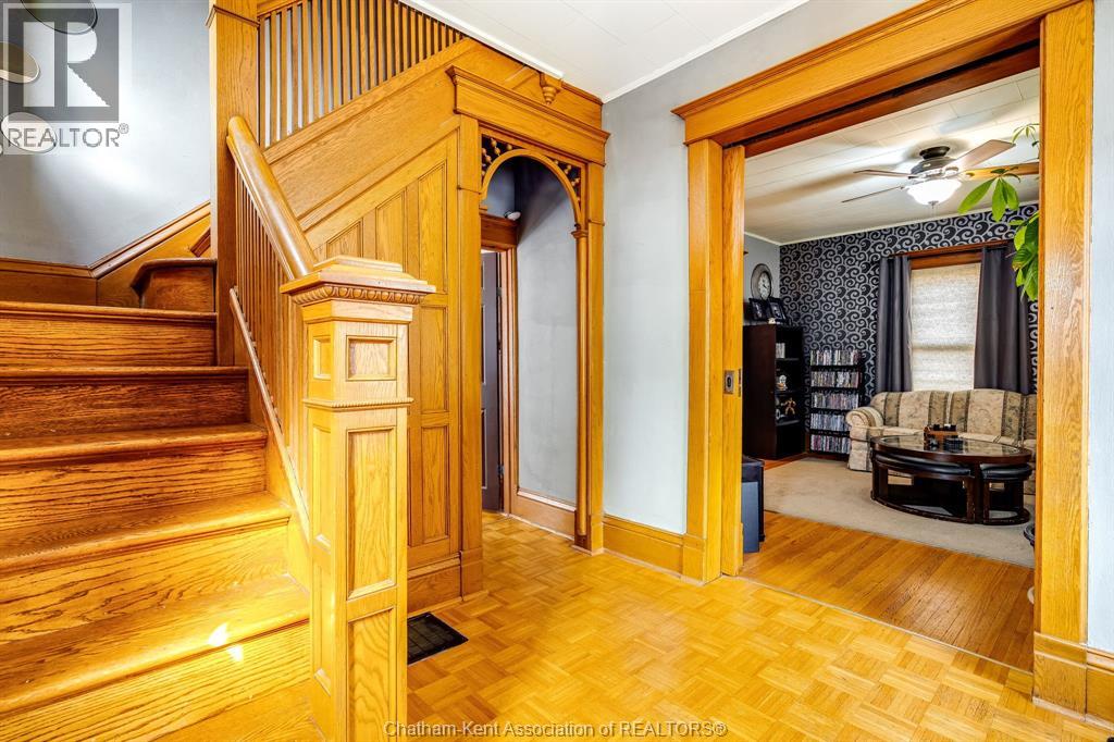Step into the charm of this classic all-brick, 2.5-story home, filled with beautiful details from the early 1900s. The inviting front foyer opens to a stunning oak staircase and leads into the main living spaces, where you'll find a bright living room with original oak pocket doors, a formal dining room, a kitchen that leads to the backyard and a versatile den or office. A second side entry with its own mudroom provides added convenience. Upstairs, the 2nd floor boasts 4 bright bedrooms and a 3-piece bath with a relaxing jet tub. The 3rd level is currently a large primary bedroom, complete with a walk-in closet and potential space for a future ensuite bath. Original hardwood floors add warmth and character throughout and make use of the old servants staircase. Enjoy summer days on the large front porch, or make use of the detached single-car garage. With UC (CBD) zoning, this property is ideal for residential, retail, or office use, offering endless possibilities. (id:4555)