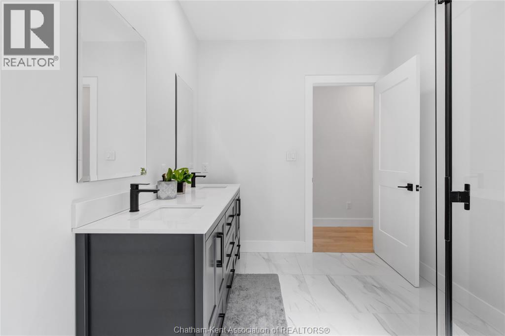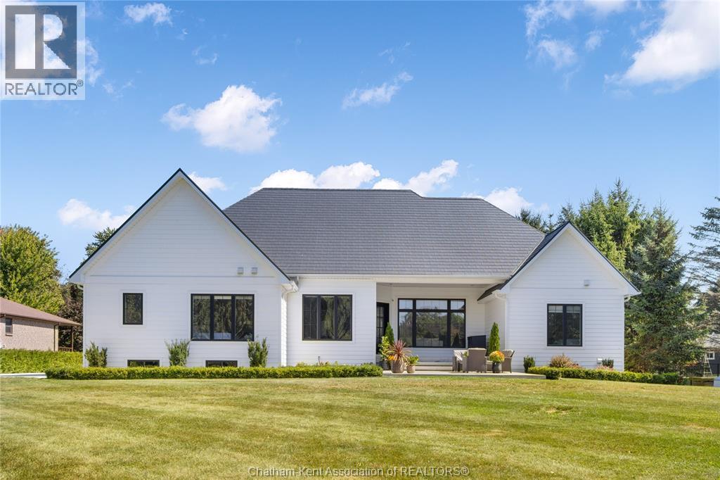 Experience modern country living at its finest in this custom-built 2021 rancher, offering nearly 2,500 sq ft of refined farmhouse style. Set on 2.8 acres of peaceful, private land, this home delivers the perfect blend of luxury, comfort, and nature. Step into the bright, open-concept living space where floor-to-ceiling windows showcase stunning views of the backyard. The kitchen is built for both daily living and entertaining, featuring custom cabinetry, quartz countertops, a large island, and a dream-worthy walk-in pantry. The private primary suite feels like a retreat, complete with a spa-inspired 5-piece ensuite, oversized walk-in closet, and convenient access to the laundry room. Three additional bedrooms and a beautifully finished 4-piece bath sit on the opposite wing deal for kids, guests, or a home office setup. The lower level provides endless potential with a full bathroom already in place, perfect for adding extra living space in the future. Outside, unwind on your covered front and back porches, enjoy the peace and take in the mature trees that surround the landscaped yard for privacy. The expansive concrete driveway leads to a double garage, and a long-lasting steel roof ensures low-maintenance living for years to come. Located just minutes from Hwy 401, 10 minutes to Dresden, and 20 minutes to Chatham, this property pairs rural serenity with everyday convenience. This isn’t just a home, t’s a lifestyle. Call Today! (id:4555)