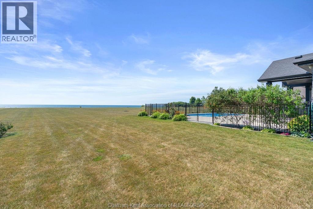 Experience refined lakeside living at 5482 Talbot Trail, a custom-designed executive home offering timeless craftsmanship, ultimate privacy, and sweeping panoramic views of Lake Erie. Situated on 2.29 acres atop a fairy tale 100-foot cliff, this one-of-a-kind residence was built in 2017 and has been meticulously maintained by its original owner. With over 2,300 sq. ft. of luxury living on the main floor and a fully finished basement, this Energy Star–rated custom home features 5 spacious bedrooms, 3.5 bathrooms, and a heated triple-car garage. Interior highlights include hardwood flooring throughout, Cambria quartz countertops, a chef’s kitchen with high-end appliances and a walk-in pantry, and built-in speakers throughout the main living areas. The primary suite is a true retreat with a spa-inspired 5-piece ensuite featuring heated floors and a custom walk-in closet. Step outside to a private outdoor oasis complete with a 16' x 32' heated in-ground pool, expansive concrete patio, pool shed, firepit, and manicured perennial gardens—all perfectly positioned to take in the unobstructed lake views. One of the lower-level bedrooms has been transformed into a professionally finished sound room with acoustic insulation, double drywall, and sound-treated ceiling. Additional features include a gas furnace, Generac, alarm system with four exterior cameras, 200 amp service, municipal water, and a fully spray-foamed basement. Surrounded by wildlife, bald eagles and only minutes from local markets and orchards, this is a rare opportunity to own a custom lakefront estate in one of Chatham-Kent’s most breathtaking locations. (id:4555)