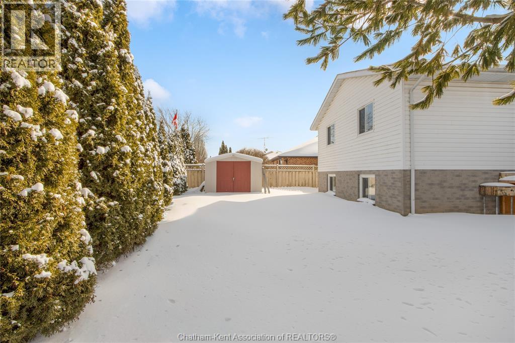 Nestled in a sought-after, family-friendly Northside Chatham neighbourhood, this spacious home is perfect for a growing family. Inside, you’re welcomed by a large foyer that offers direct access to the lower level, garage, and upper living spaces—an ideal layout for busy family life. The upper level features a bright and expansive living room filled with natural light, seamlessly flowing into a spacious dining area and well-appointed kitchen. With ample cabinetry and workspace, the kitchen is perfectly suited for everyday meals as well as hosting family and friends. The main floor is complete with three well-sized bedrooms and a four-piece bathroom, providing comfortable accommodations for the whole family. Downstairs, the fully finished lower level offers incredible additional living space, including a massive recreational room ideal for movie nights, a playroom, or a home gym. An additional bedroom and three-piece bathroom make this level perfect for guests, extended family, or a private home office. A dedicated laundry room and a large utility and storage area add to the home’s practicality. Step outside to your fully fenced backyard oasis, featuring a charming pergola—perfect for outdoor entertaining or relaxing evenings—along with a storage shed for added convenience. Located close to schools, parks, and amenities, this home checks all the boxes for family living in a prime location. (id:4555)