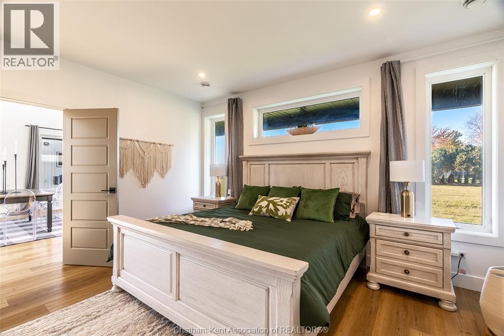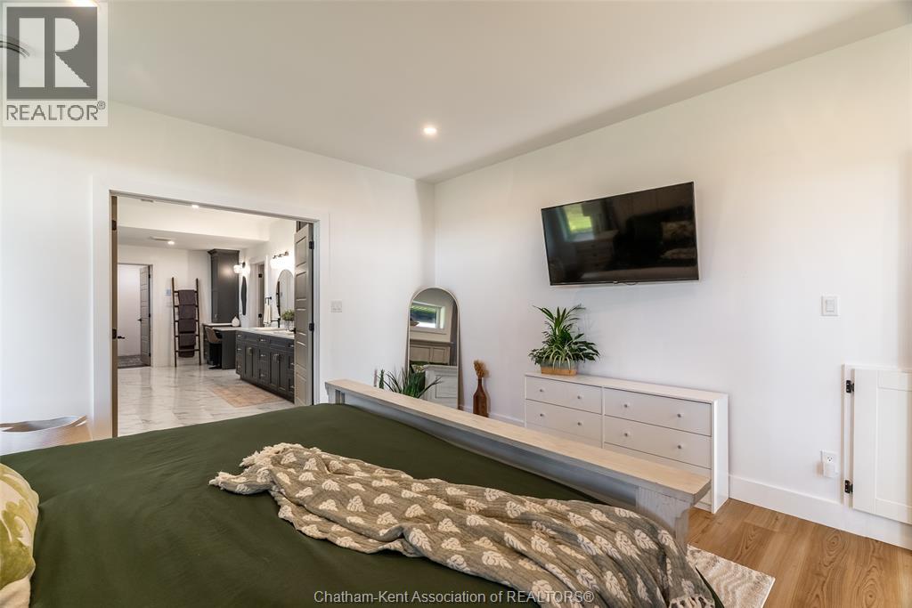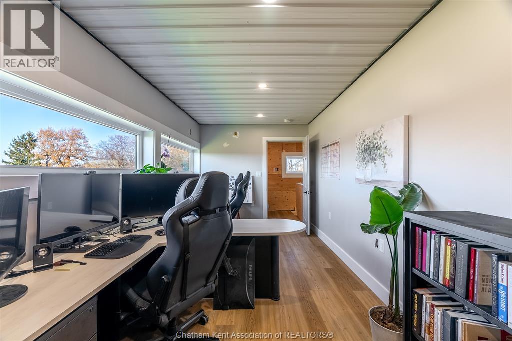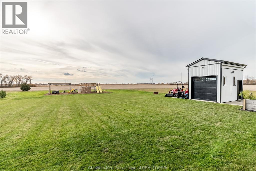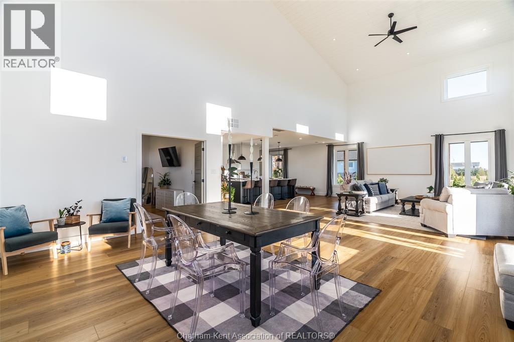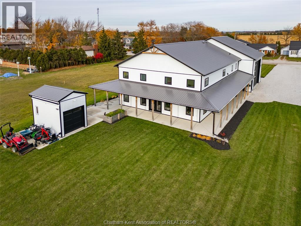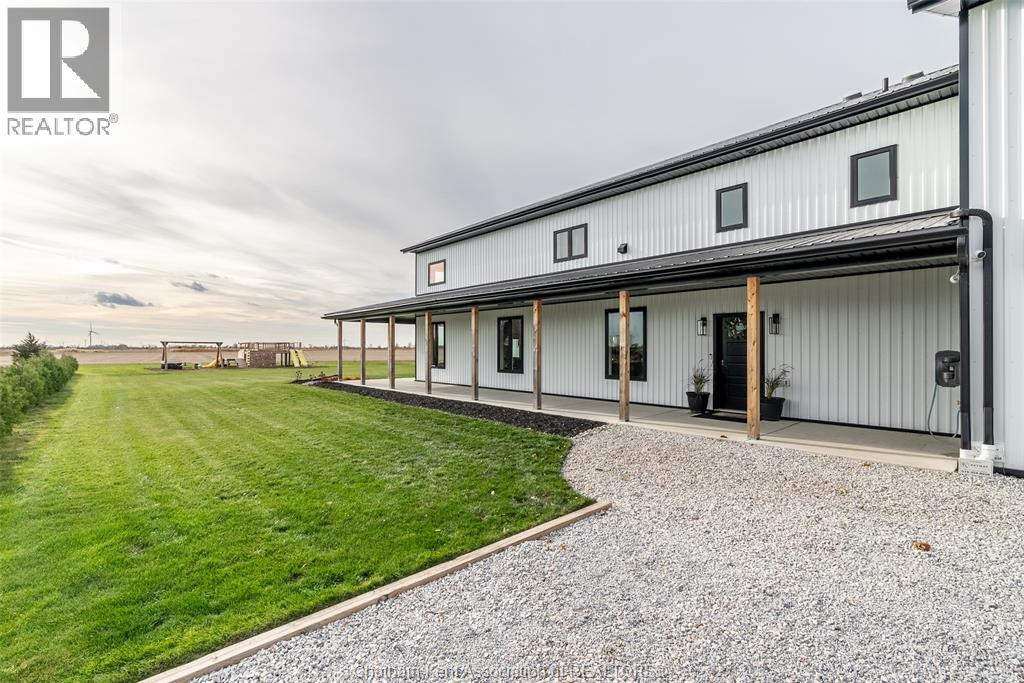 Welcome to this stunning 2-year-young barndominium, perfectly blending modern living and country charm. Sitting on just under an acre in the quaint town of Merlin, this 5-bedroom, 4-bath home offers space, function, and style at every turn. The main floor features soaring vaulted ceilings, an open-concept layout, with loads of natural light and a large kitchen with island, walk-in pantry, and smart appliances. The main floor primary suite is a true retreat with a soaker tub, separate glass shower, dual vanity, and large walk-in closet; with laundry conveniently located off this room, as well as access to the garage. Upstairs offers 4 generous bedrooms, two 4-piece baths (one Jack & Jill), and an additional family room for play or relaxation. The heated and cooled shop includes in-floor heat, a 5th bathroom, and even a urinal in the office; making it the ultimate manroom or workspace. Enjoy the freedom of country living with easy access to the 401, Chatham, Tilbury, and Windsor. A place where you can work, play, and live - all in one. Ask for list of uprgrades. #lovewhereyoulive (id:4555)