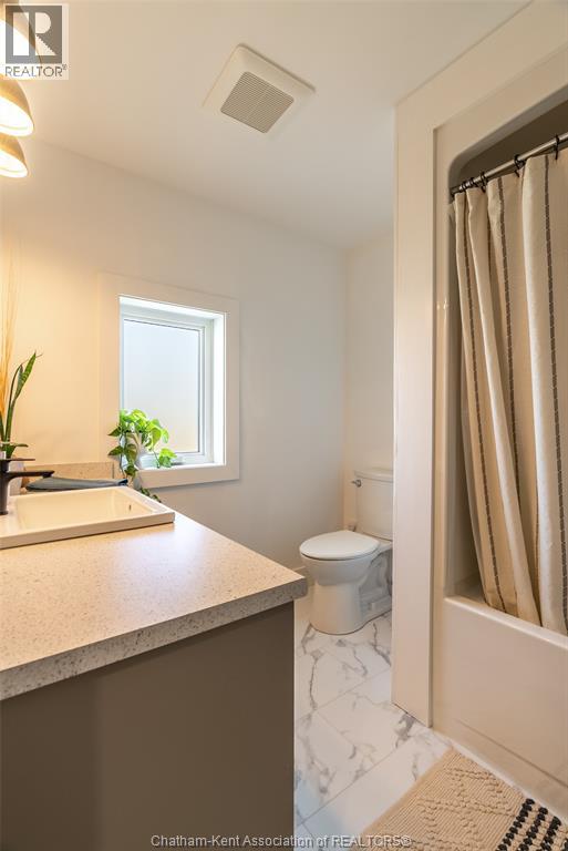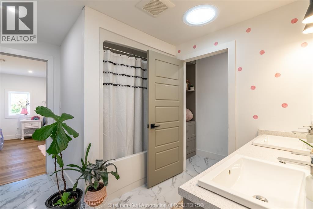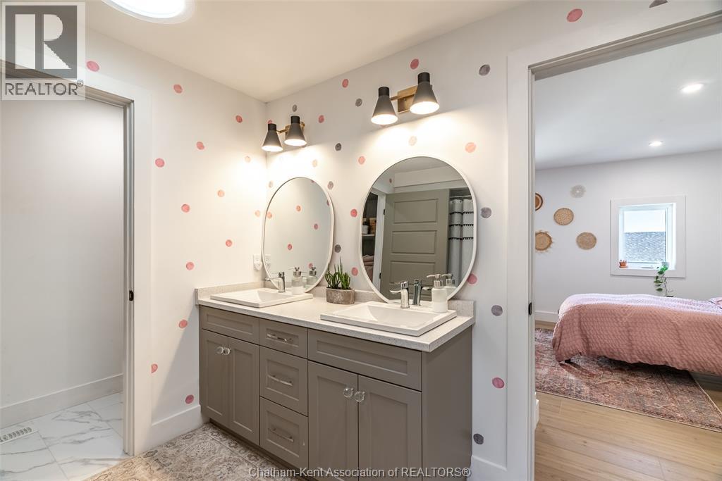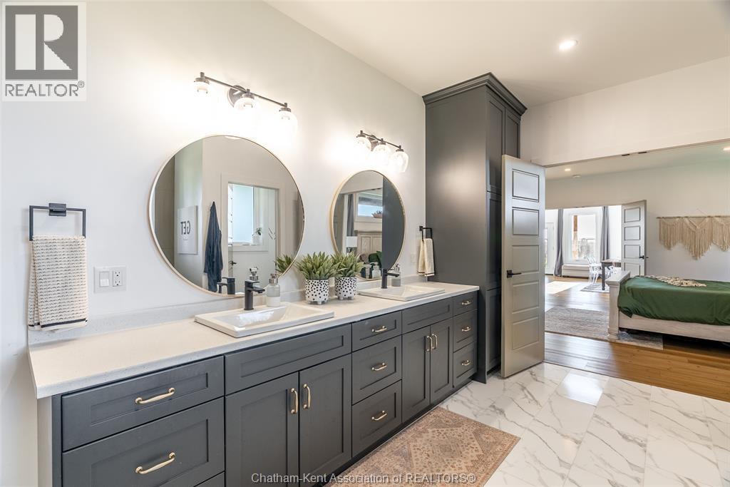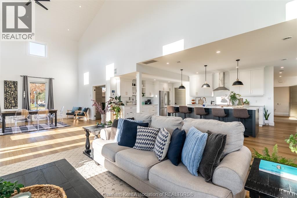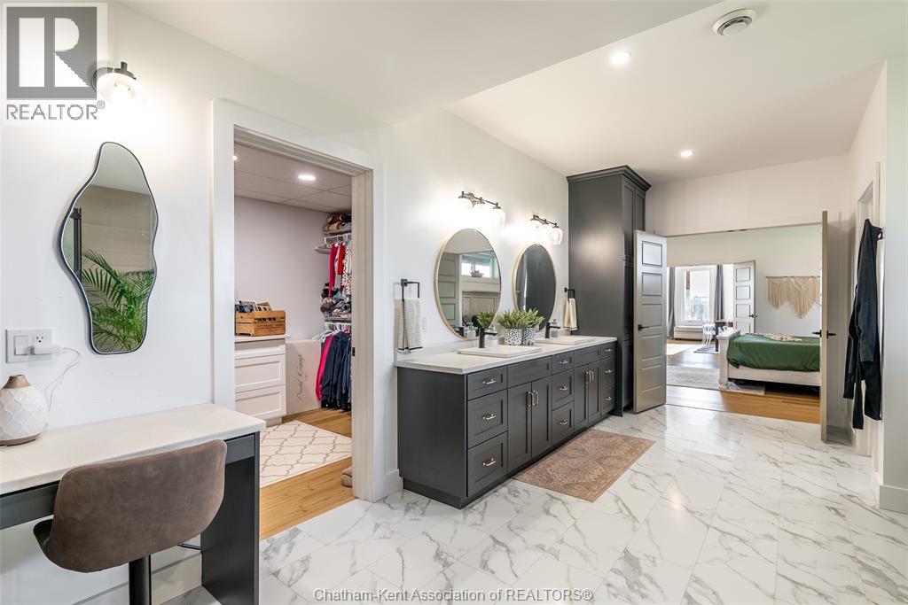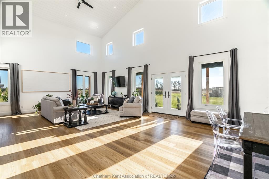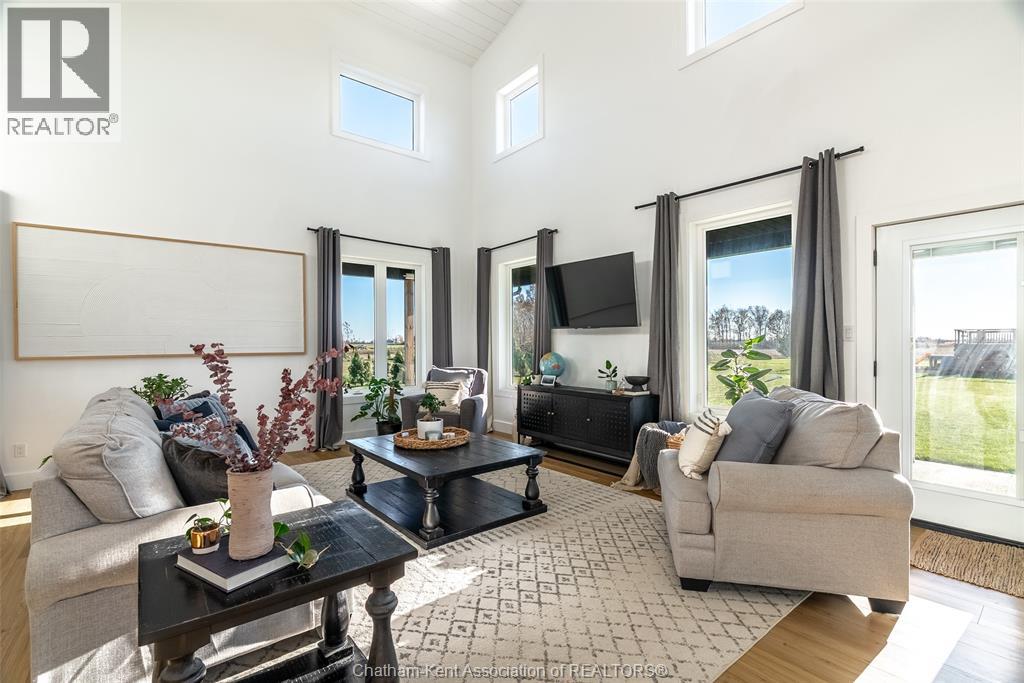 Welcome to this stunning 2-year-young barndominium, perfectly blending modern living and country charm. Sitting on just under an acre in the quaint town of Merlin, this 5-bedroom, 4-bath home offers space, function, and style at every turn. The main floor features soaring vaulted ceilings, an open-concept layout, with loads of natural light and a large kitchen with island, walk-in pantry, and smart appliances. The main floor primary suite is a true retreat with a soaker tub, separate glass shower, dual vanity, and large walk-in closet; with laundry conveniently located off this room, as well as access to the garage. Upstairs offers 4 generous bedrooms, two 4-piece baths (one Jack & Jill), and an additional family room for play or relaxation. The heated and cooled shop includes in-floor heat, a 5th bathroom, and even a urinal in the office; making it the ultimate manroom or workspace. Enjoy the freedom of country living with easy access to the 401, Chatham, Tilbury, and Windsor. A place where you can work, play, and live - all in one. Ask for list of uprgrades. #lovewhereyoulive (id:4555)