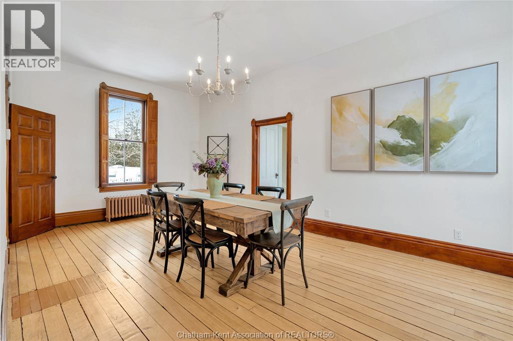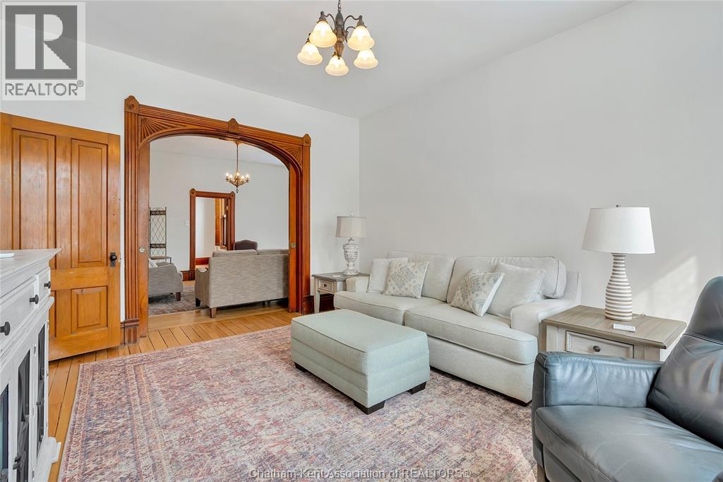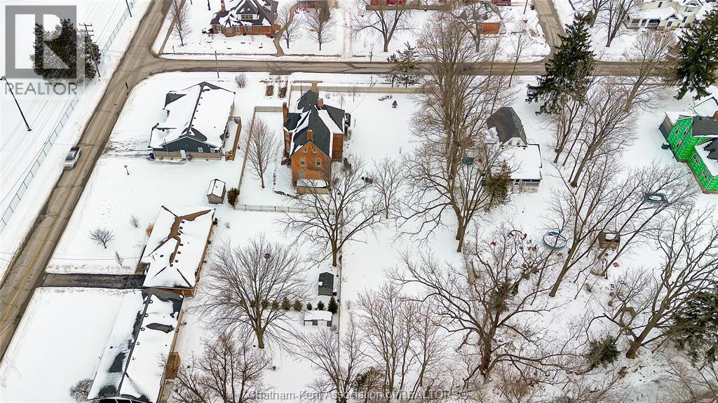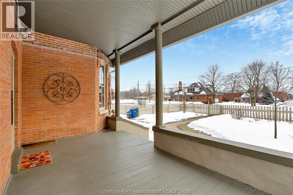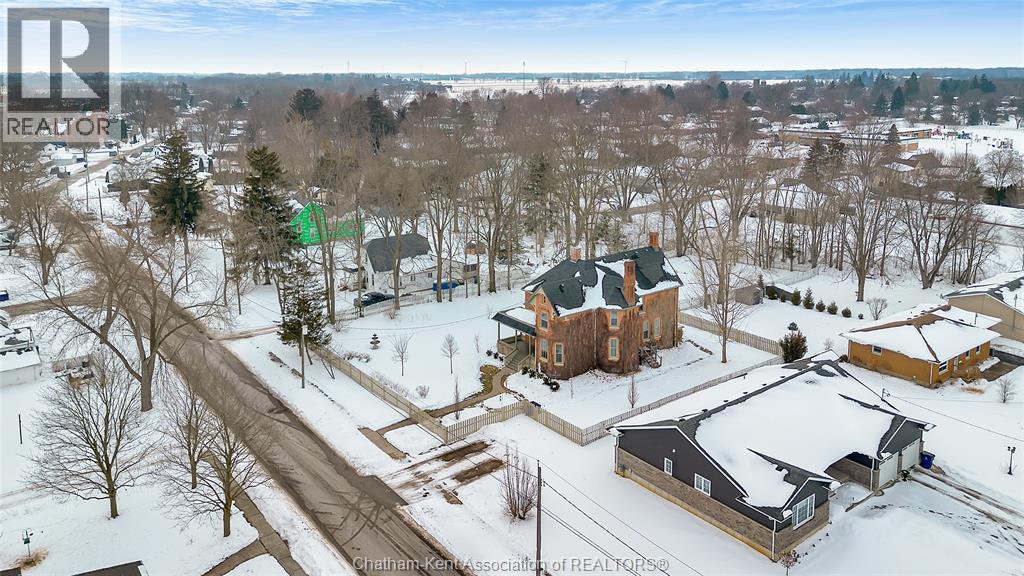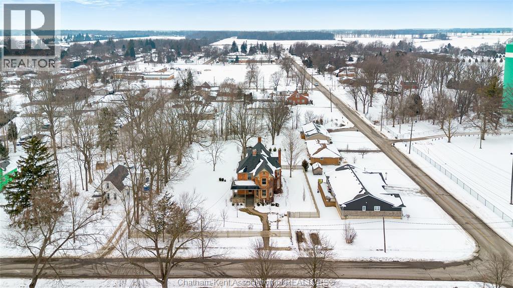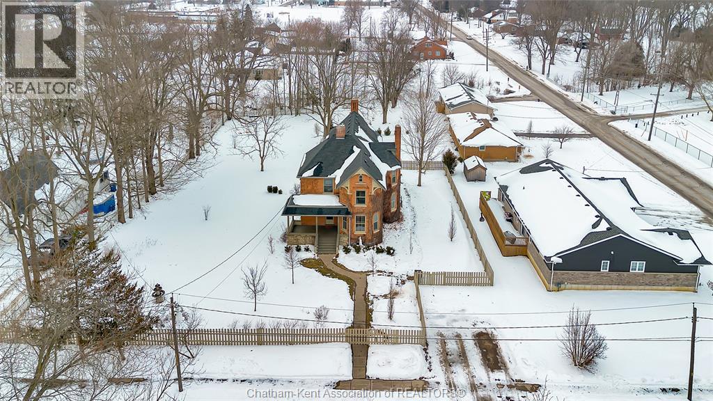 This classic Victorian home in the heart of Thamesville offers exceptional space, craftsmanship, and timeless character. Set on a fully fenced 0.63-acre lot, the property features a gated entry, mature trees, and a welcoming pillared front porch that creates an impressive first impression. Inside, soaring ceilings and original architectural details shine, including rich woodwork, elegant archways, pocket doors, and hardwood flooring throughout. The main floor offers a traditional front parlour, a comfortable living room with decorative fireplace, and a spacious dining room that flows seamlessly into a beautifully updated kitchen (August 2025). Both the main-floor powder room and upper full bathroom were also renovated in August 2025, blending modern comfort with historic charm. A newer boiler (2022) adds efficiency and peace of mind. With six bedrooms, the home offers outstanding flexibility for growing families, home offices, guests, or creative space. The unfinished attic provides excellent potential for additional living area, while the full basement offers abundant storage and utility space. Front porch shingles were replaced in 2025, enhancing curb appeal while preserving the home’s classic aesthetic. Situated on a quiet side street, the setting feels private and estate-like, yet remains within easy walking distance of Main Street shops, parks, the community centre, and pool. Properties offering this rare combination of lot size, architectural character, updates, and location are seldom available and truly best appreciated in person. (id:4555)