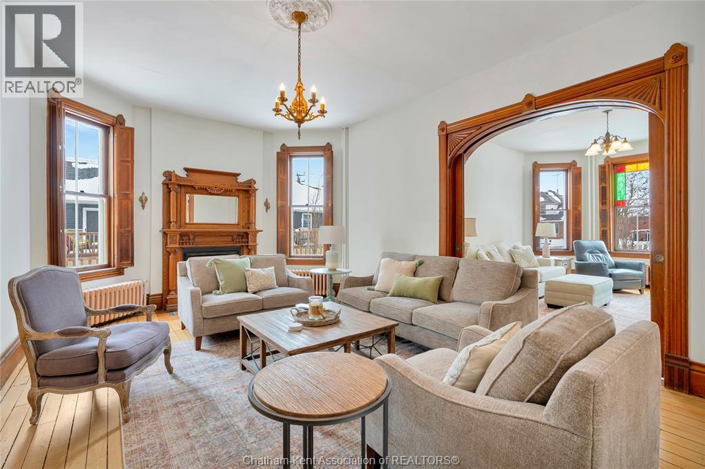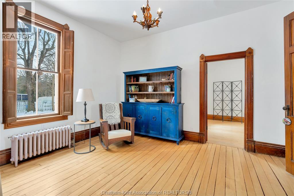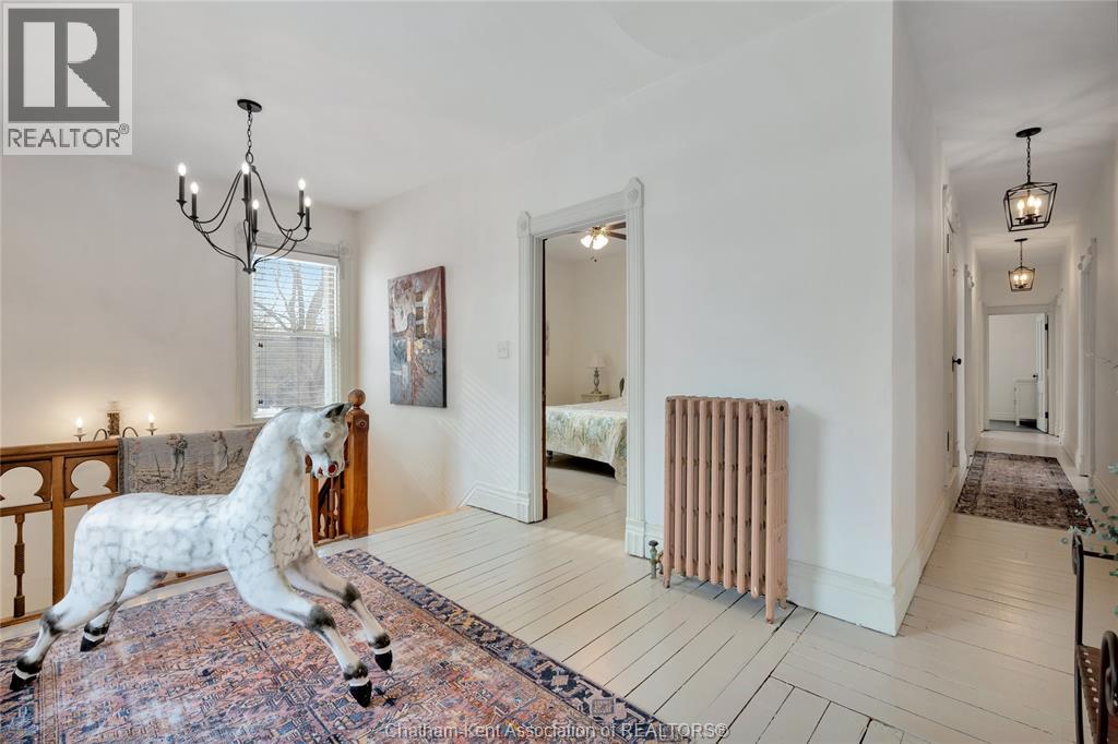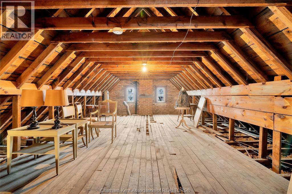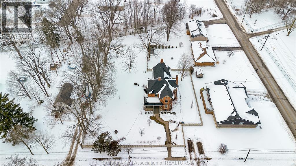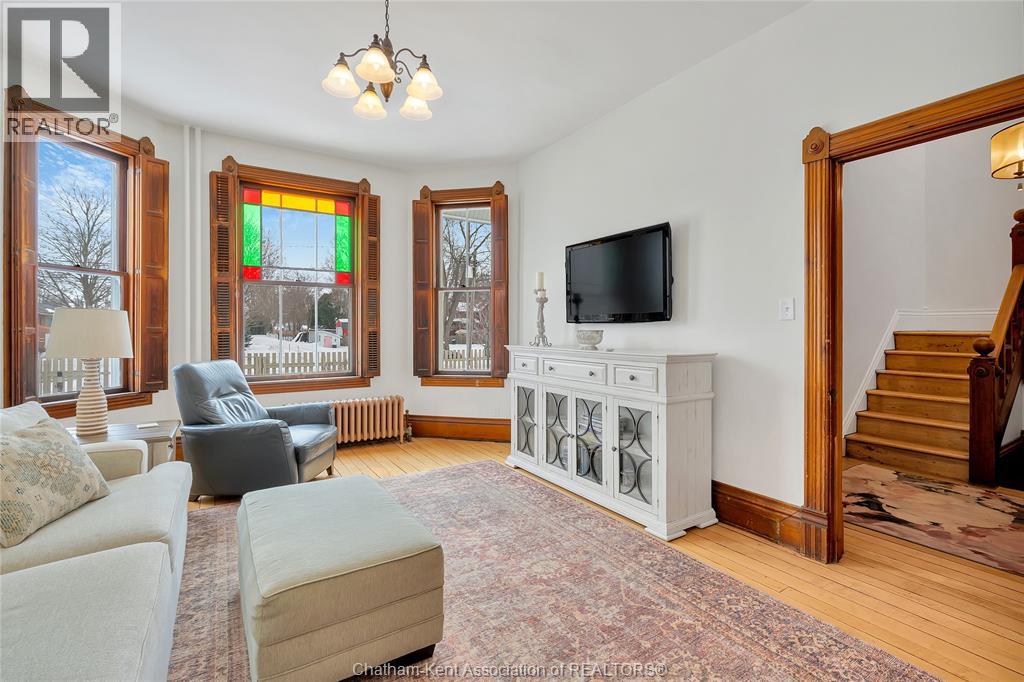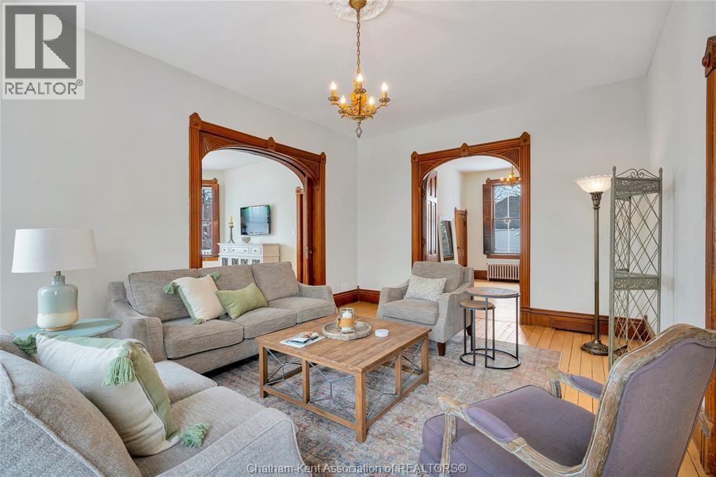 This classic Victorian home in the heart of Thamesville offers exceptional space, craftsmanship, and timeless character. Set on a fully fenced 0.63-acre lot, the property features a gated entry, mature trees, and a welcoming pillared front porch that creates an impressive first impression. Inside, soaring ceilings and original architectural details shine, including rich woodwork, elegant archways, pocket doors, and hardwood flooring throughout. The main floor offers a traditional front parlour, a comfortable living room with decorative fireplace, and a spacious dining room that flows seamlessly into a beautifully updated kitchen (August 2025). Both the main-floor powder room and upper full bathroom were also renovated in August 2025, blending modern comfort with historic charm. A newer boiler (2022) adds efficiency and peace of mind. With six bedrooms, the home offers outstanding flexibility for growing families, home offices, guests, or creative space. The unfinished attic provides excellent potential for additional living area, while the full basement offers abundant storage and utility space. Front porch shingles were replaced in 2025, enhancing curb appeal while preserving the home’s classic aesthetic. Situated on a quiet side street, the setting feels private and estate-like, yet remains within easy walking distance of Main Street shops, parks, the community centre, and pool. Properties offering this rare combination of lot size, architectural character, updates, and location are seldom available and truly best appreciated in person. (id:4555)