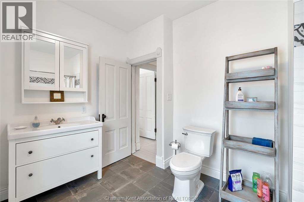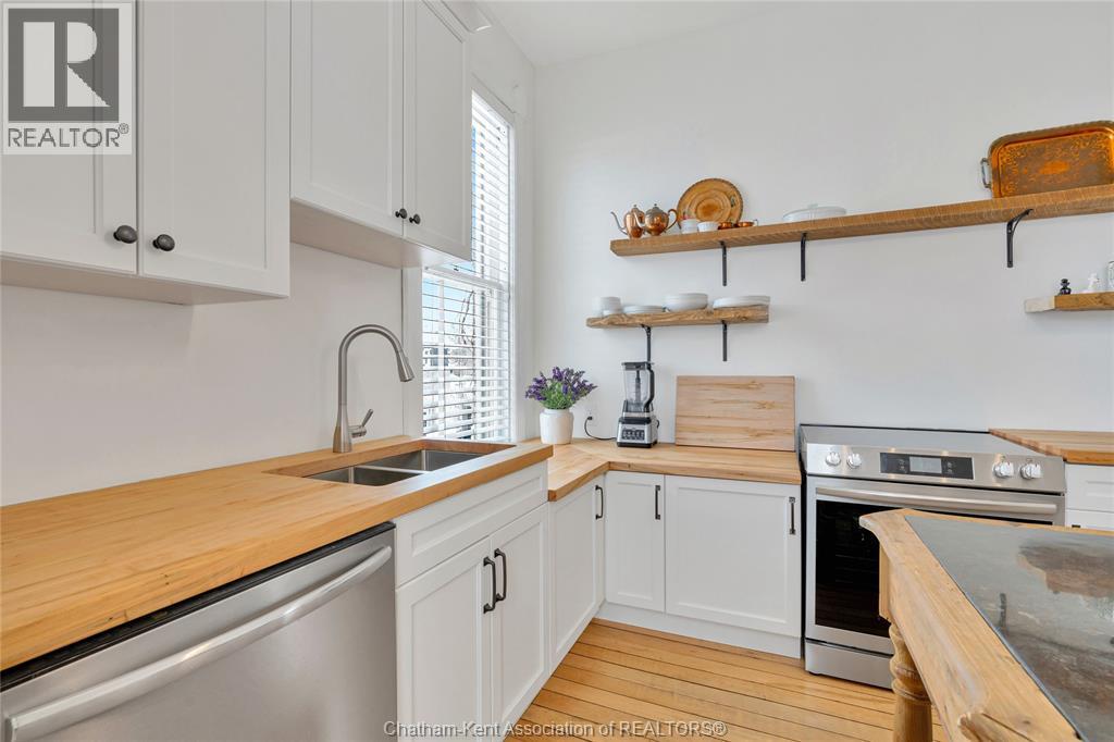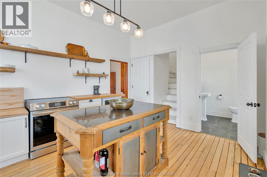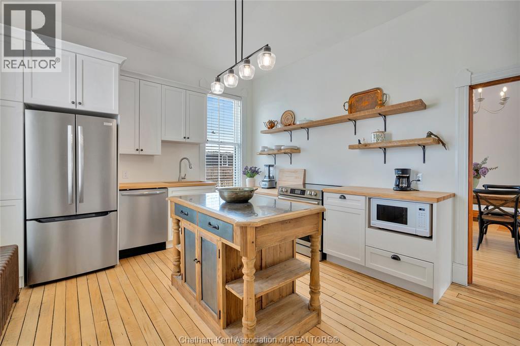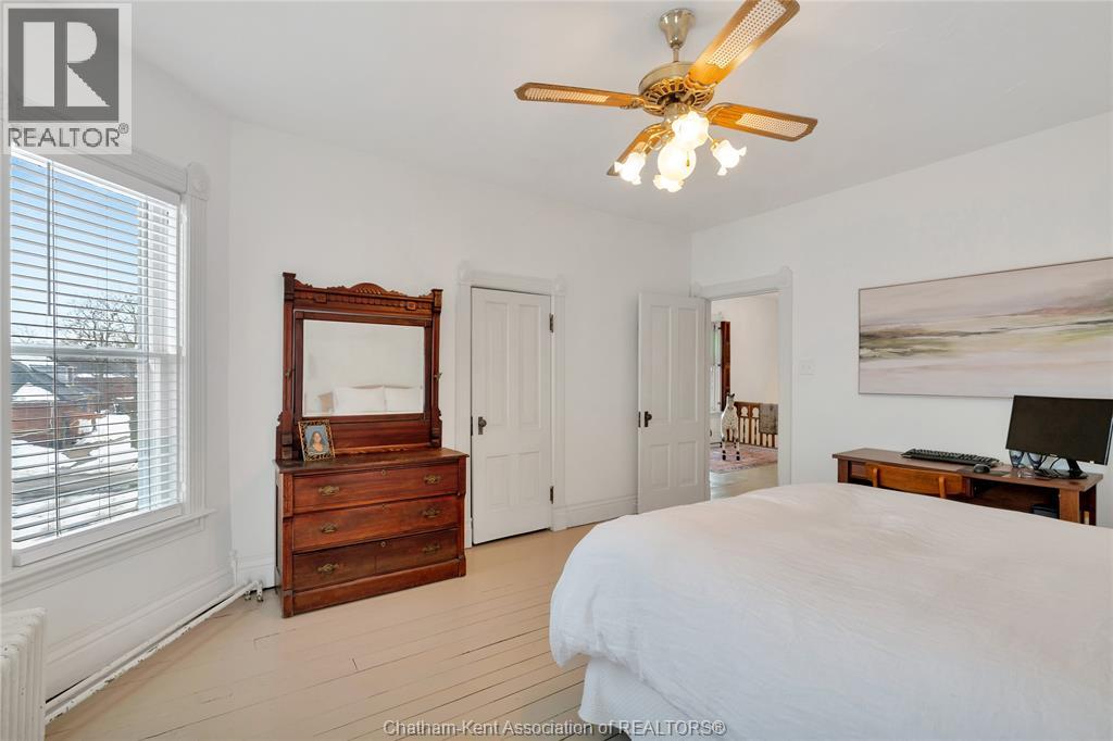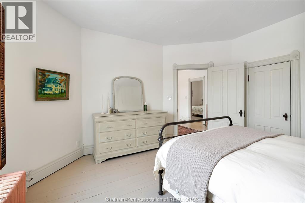 This classic Victorian home in the heart of Thamesville offers exceptional space, craftsmanship, and timeless character. Set on a fully fenced 0.63-acre lot, the property features a gated entry, mature trees, and a welcoming pillared front porch that creates an impressive first impression. Inside, soaring ceilings and original architectural details shine, including rich woodwork, elegant archways, pocket doors, and hardwood flooring throughout. The main floor offers a traditional front parlour, a comfortable living room with decorative fireplace, and a spacious dining room that flows seamlessly into a beautifully updated kitchen (August 2025). Both the main-floor powder room and upper full bathroom were also renovated in August 2025, blending modern comfort with historic charm. A newer boiler (2022) adds efficiency and peace of mind. With six bedrooms, the home offers outstanding flexibility for growing families, home offices, guests, or creative space. The unfinished attic provides excellent potential for additional living area, while the full basement offers abundant storage and utility space. Front porch shingles were replaced in 2025, enhancing curb appeal while preserving the home’s classic aesthetic. Situated on a quiet side street, the setting feels private and estate-like, yet remains within easy walking distance of Main Street shops, parks, the community centre, and pool. Properties offering this rare combination of lot size, architectural character, updates, and location are seldom available and truly best appreciated in person. (id:4555)