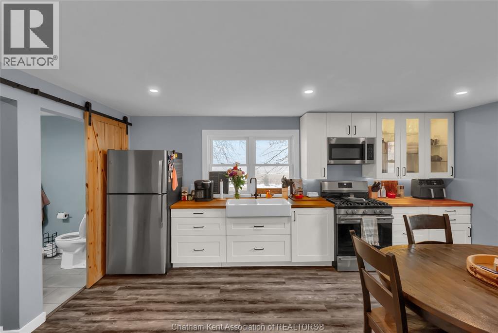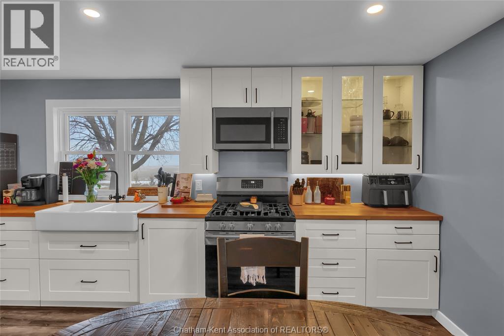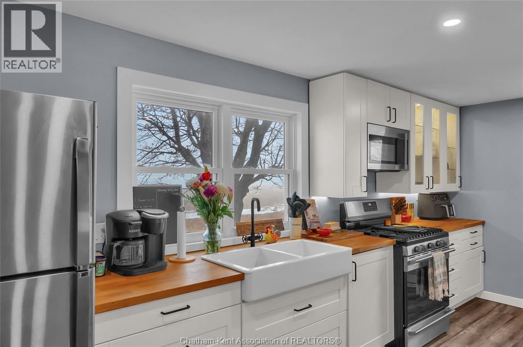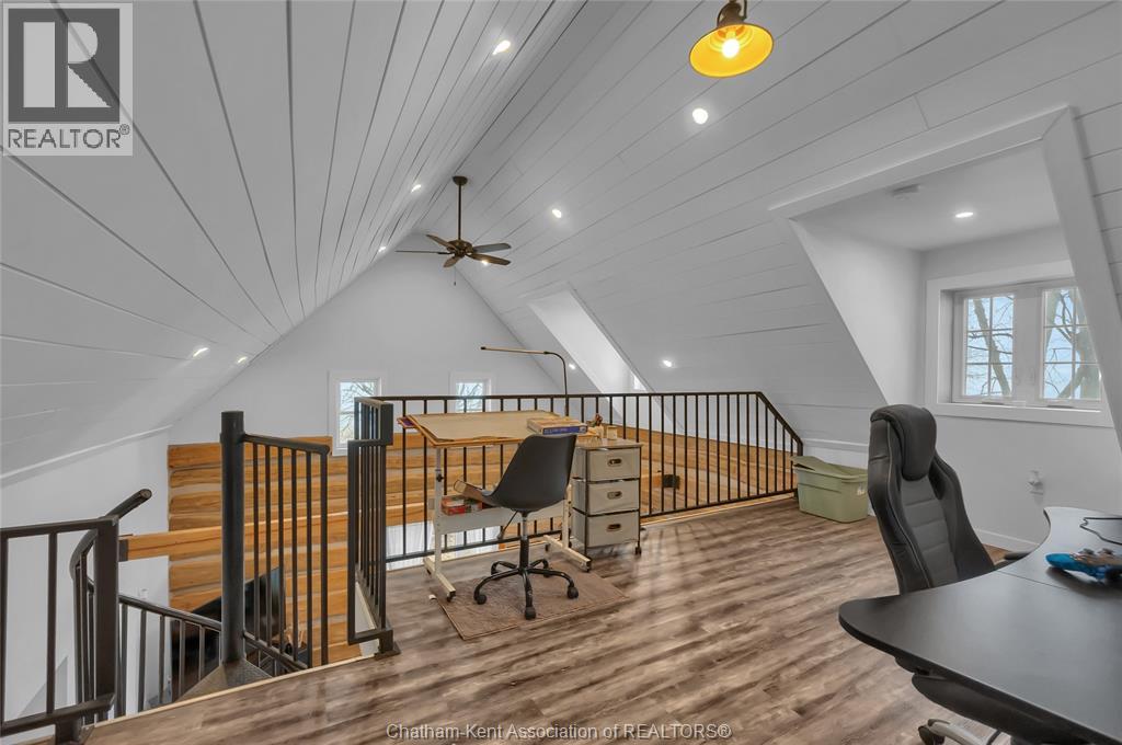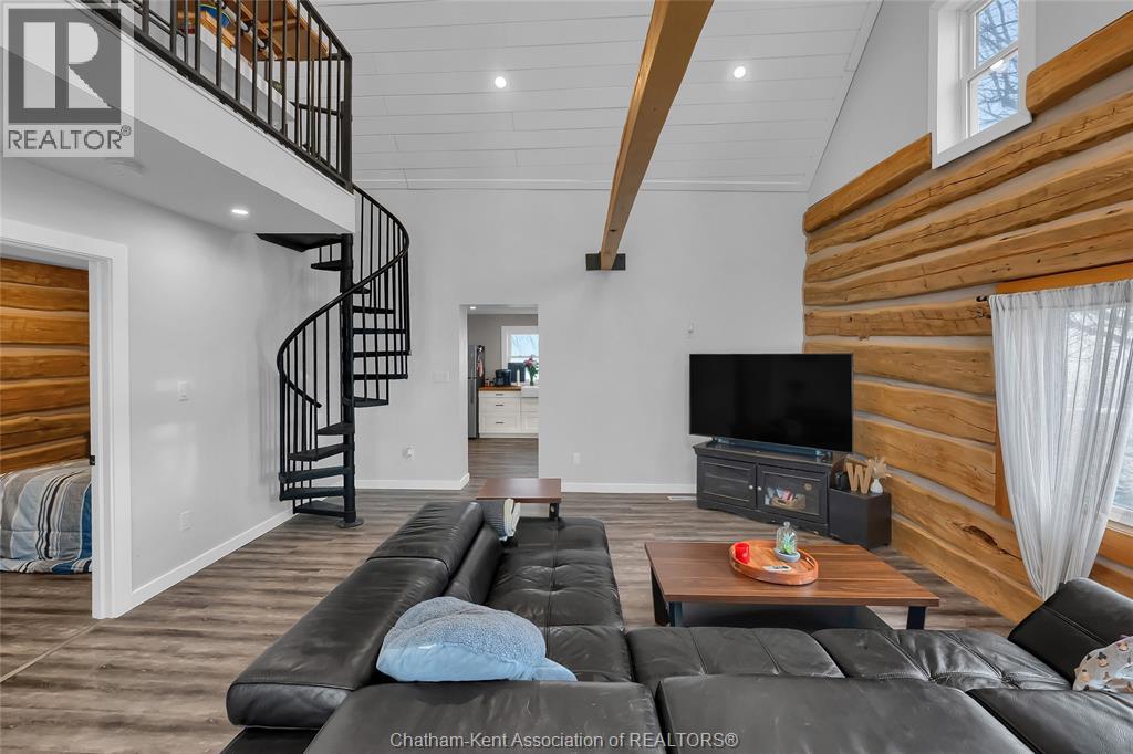 A rustic rural retreat just outside of Pain Court. Enjoy panoramic vistas of the countryside on this half acre rural lot. The one bedroom, one bathroom home features exposed log walls with spiral staircase to the bonus second level loft area. Spacious eat-in kitchen with farmhouse apron sink and and back-lit cabinets. 3pc bathroom with shower and side entrance off basement stairs. Updated furnace and AC and owned hot water heater. Basement has plenty of room for storage as well as the laundry area. Home has updated roof and insulation, siding and windows. Double car sized detached garage, has lots of potential for hobbyists. Save thousands per year on property taxes and enjoy no neighbours, and great views from sunrise to sunset with this charming rural property. (id:4555)