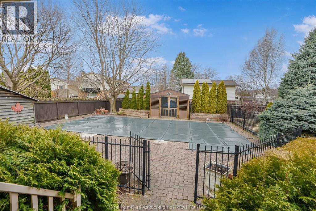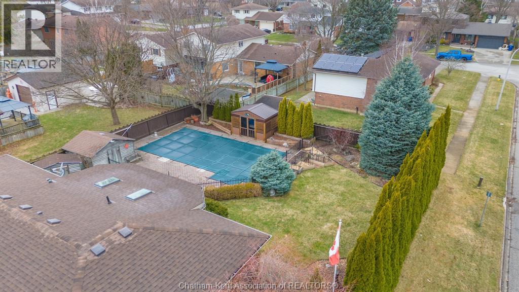 Enjoy effortless living in this beautifully maintained 3+ 1 bedroom ranch. 27 Parry Drive is an appealing combination of privacy and convenience. Terrific north Chatham location! The thoughtfully designed layout offers bright living spaces, Stunning kitchen fully remodeled in 2014 new quartz countertops, leeds cabinets and porcelain tile flooring! 3 Comfortable bedrooms all on the main level. Hunter Douglas window treatments in the living room! Beautifully finished basement with newer flooring, gas fireplace, terrific office or bedroom and full washroom! The real highlight is the backyard retreat—complete with a sparkling salt water pool with iron fencing, cabana, large covered patio and plenty of greenspace for your dog to roam! Two large sheds. Plenty of space for outdoor dining and entertaining. Whether you're hosting summer gatherings or enjoying quiet evenings poolside, this home delivers the lifestyle you've been looking for! Close too all north side amenities! New roof shingles 2023. Must be seen to be appreciated! Call today for your own private viewing! (id:4555)