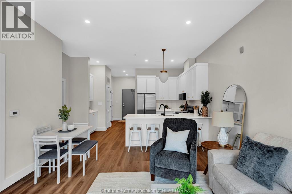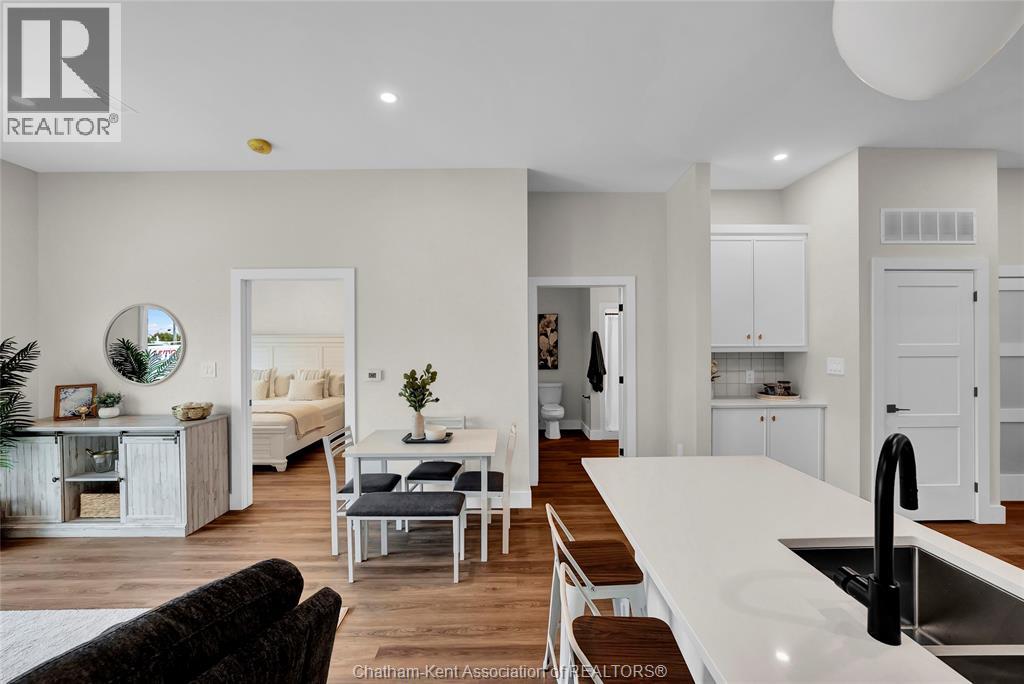Now Leasing! The Avalon Apartments in Tilbury, a brand new purpose built 5 storey apartment building. Locally owned and operated and built with local trades. This one bedroom plus den apartment is a great choice for someone looking to rent in a new, clean, safe building with fixed costs. Bright and spacious with 9.5 ft ceilings, oversized windows and 8ft tall sliding patio doors. Whirlpool gold appliances throughout, including in-unit laundry. Well appointed kitchen with quartz countertops, double stainless undermount sink, lower pull-outs, extra upper cabinets and coffee bar. Walk through closet from bedroom to large 3 pc ensuite bathroom with walk-in shower. Utilities and parking are included. Contact leasing agent to arrange showing. PHOTOS AND VIRTUAL TOUR ARE OF THE LARGER ONE PLUS DEN XL (id:4555)