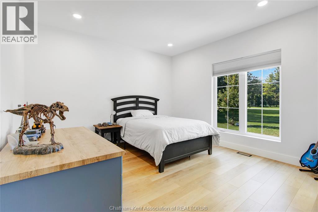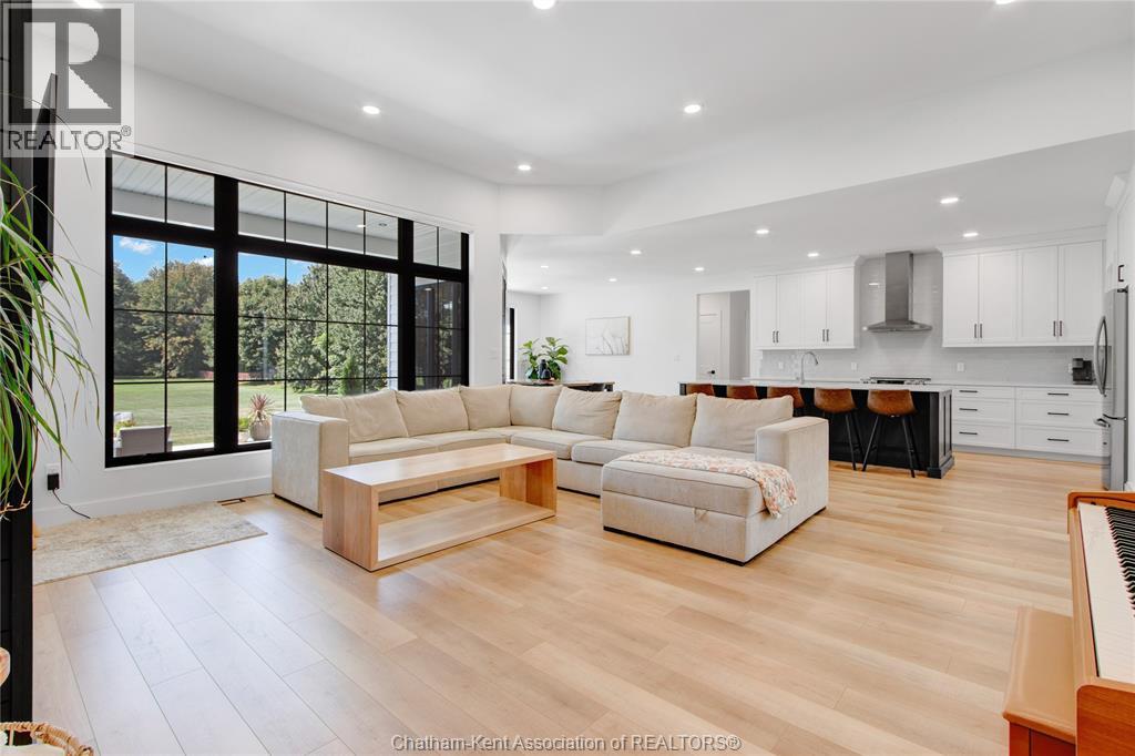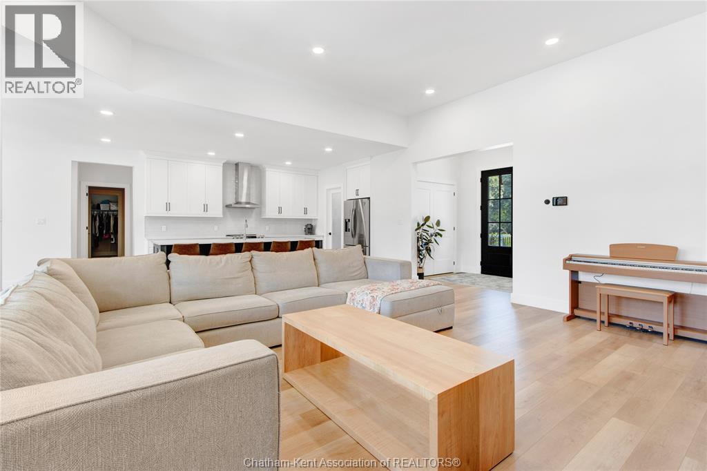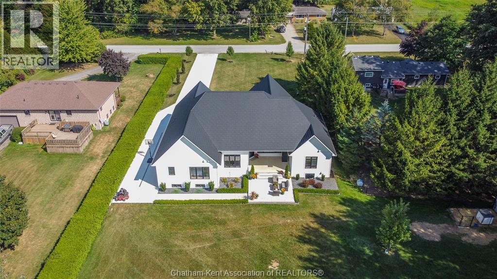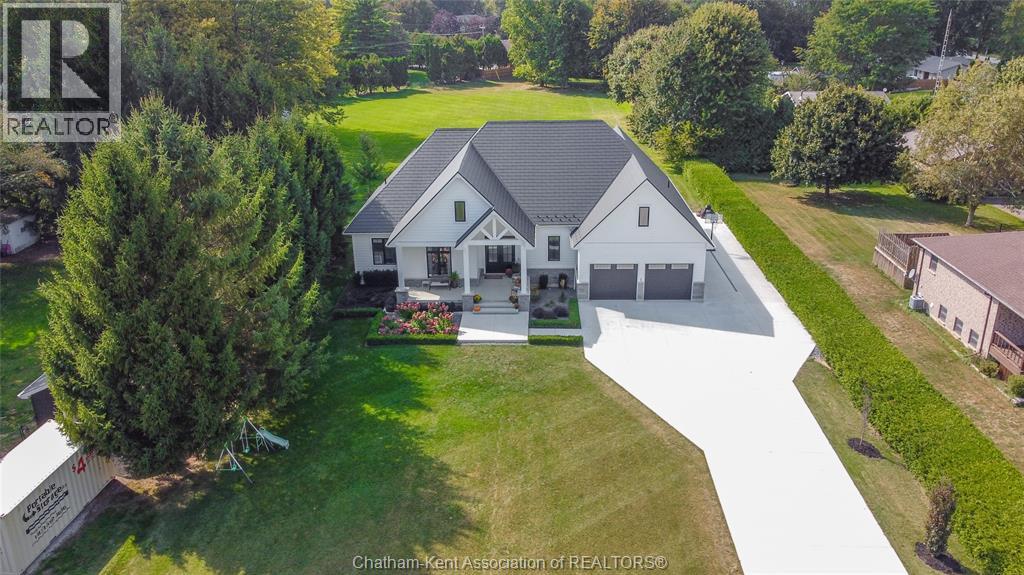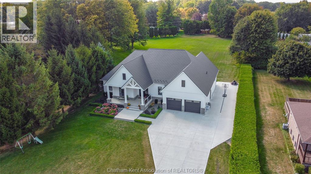 Experience modern country living at its finest in this custom-built 2021 rancher, offering nearly 2,500 sq ft of refined farmhouse style. Set on 2.8 acres of peaceful, private land, this home delivers the perfect blend of luxury, comfort, and nature. Step into the bright, open-concept living space where floor-to-ceiling windows showcase stunning views of the backyard. The kitchen is built for both daily living and entertaining, featuring custom cabinetry, quartz countertops, a large island, and a dream-worthy walk-in pantry. The private primary suite feels like a retreat, complete with a spa-inspired 5-piece ensuite, oversized walk-in closet, and convenient access to the laundry room. Three additional bedrooms and a beautifully finished 4-piece bath sit on the opposite wing deal for kids, guests, or a home office setup. The lower level provides endless potential with a full bathroom already in place, perfect for adding extra living space in the future. Outside, unwind on your covered front and back porches, enjoy the peace and take in the mature trees that surround the landscaped yard for privacy. The expansive concrete driveway leads to a double garage, and a long-lasting steel roof ensures low-maintenance living for years to come. Located just minutes from Hwy 401, 10 minutes to Dresden, and 20 minutes to Chatham, this property pairs rural serenity with everyday convenience. This isn’t just a home, it’s a lifestyle. Call Today! (id:4555)