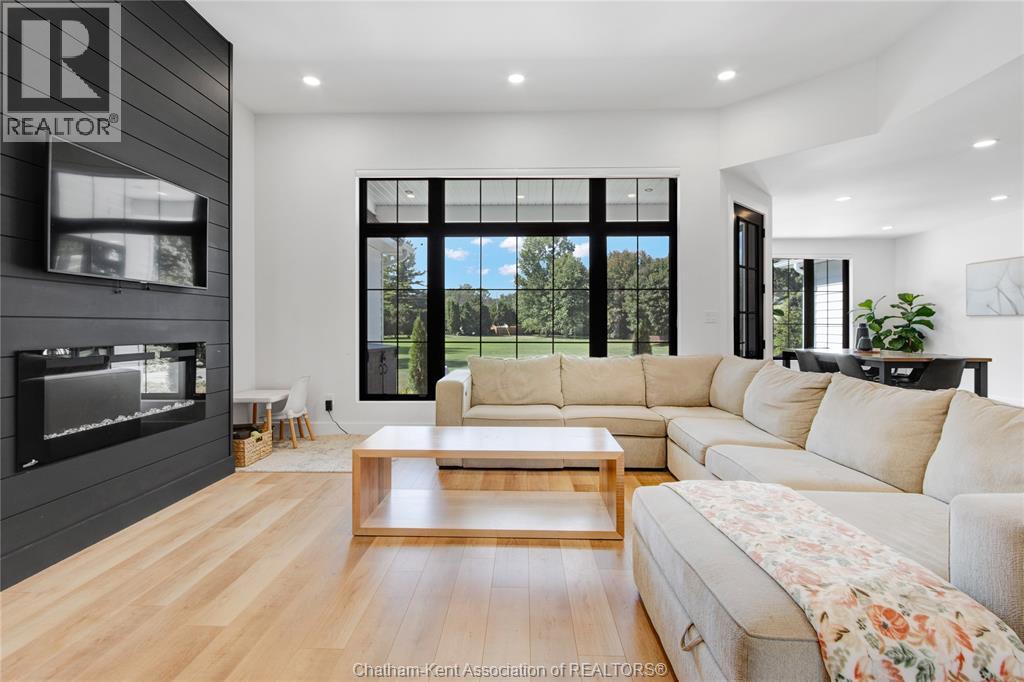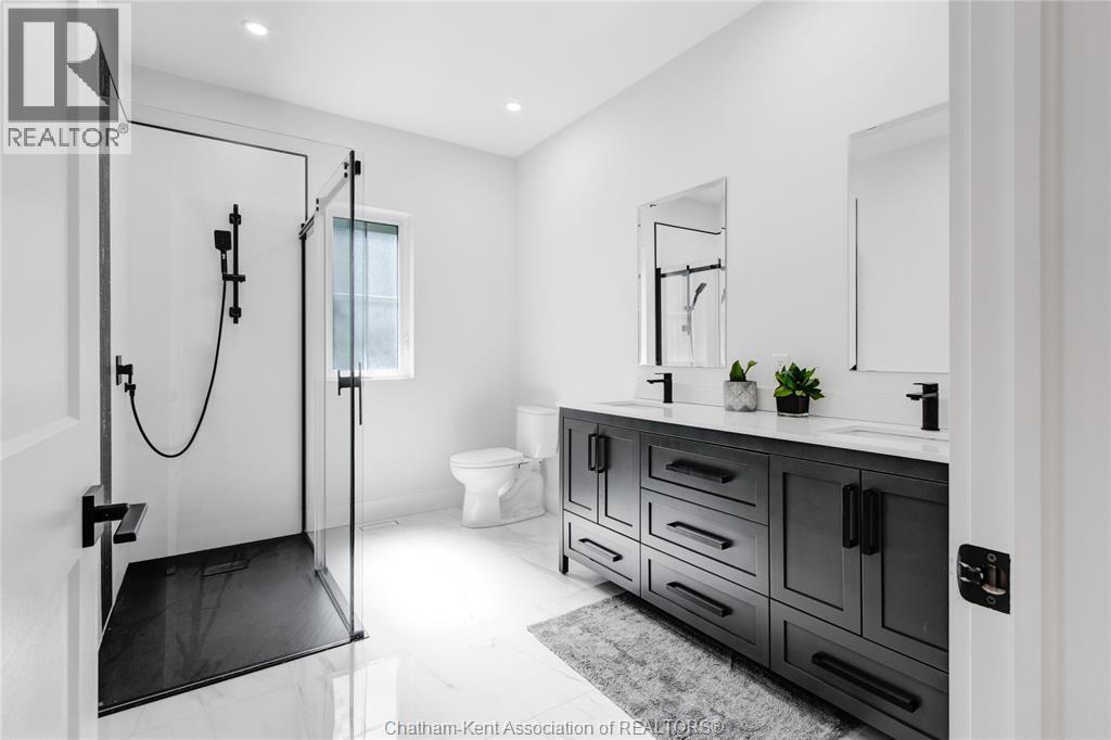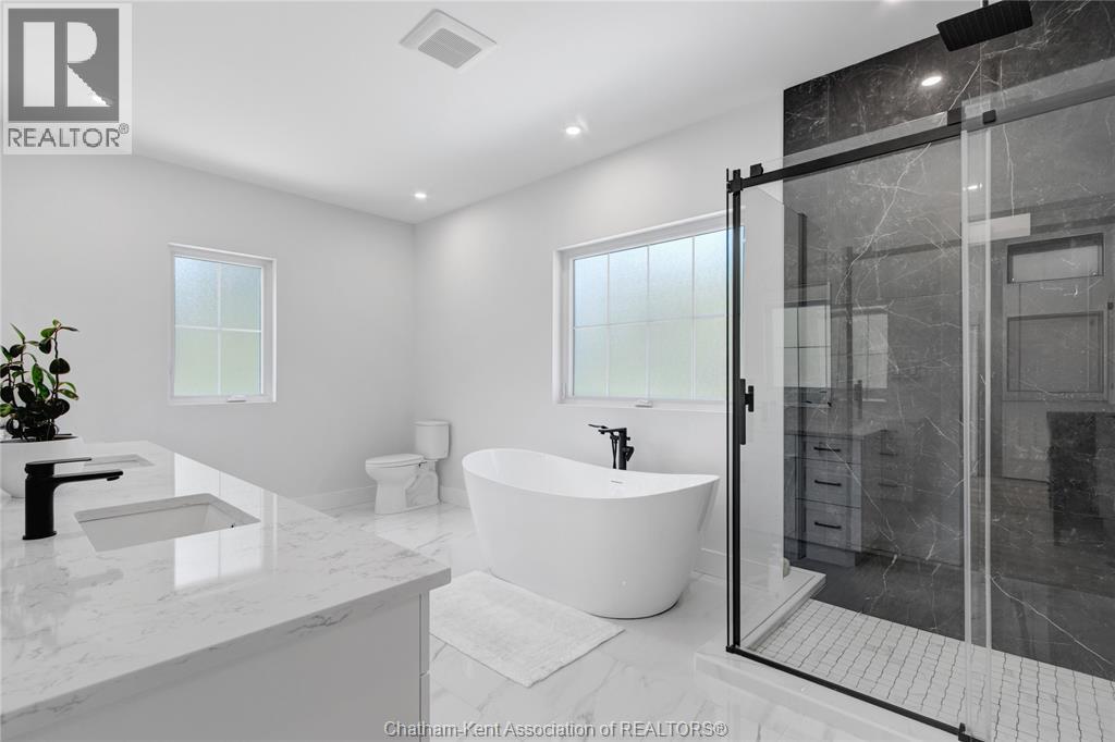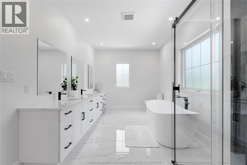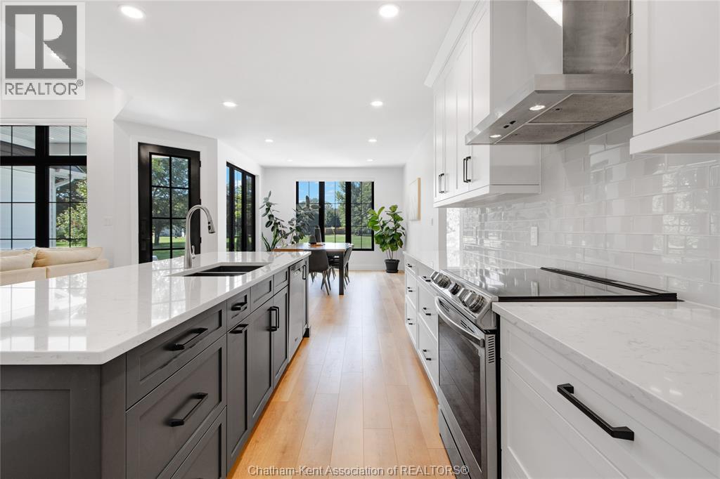Experience modern country living at its finest in this custom-built 2021 rancher, offering nearly 2,500 sq ft of refined farmhouse style. Set on 2.8 acres of peaceful, private land, this home delivers the perfect blend of luxury, comfort, and nature. Step into the bright, open-concept living space where floor-to-ceiling windows showcase stunning views of the backyard. The kitchen is built for both daily living and entertaining, featuring custom cabinetry, quartz countertops, a large island, and a dream-worthy walk-in pantry. The private primary suite feels like a retreat, complete with a spa-inspired 5-piece ensuite, oversized walk-in closet, and convenient access to the laundry room. Three additional bedrooms and a beautifully finished 4-piece bath sit on the opposite wing deal for kids, guests, or a home office setup. The lower level provides endless potential with a full bathroom already in place, perfect for adding extra living space in the future. Outside, unwind on your covered front and back porches, enjoy the peace and take in the mature trees that surround the landscaped yard for privacy. The expansive concrete driveway leads to a double garage, and a long-lasting steel roof ensures low-maintenance living for years to come. Located just minutes from Hwy 401, 10 minutes to Dresden, and 20 minutes to Chatham, this property pairs rural serenity with everyday convenience. This isn’t just a home, it’s a lifestyle. Call Today! (id:4555)