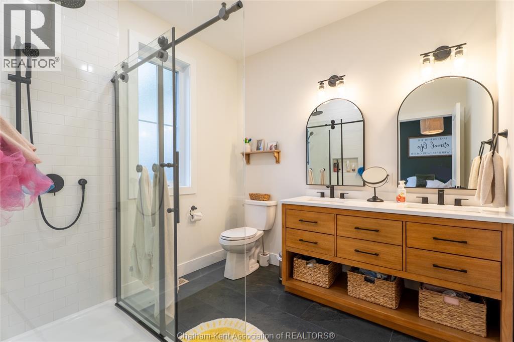 Welcome to this stunning custom-built ranch home (2023), offering 1,540 sq ft of thoughtfully designed living space on the main level, where quality craftsmanship and attention to detail shine throughout. From the moment you arrive, you’ll appreciate the inviting curb appeal, oversized driveway, and 25-ft deep garage—perfect for accommodating full-size pickup trucks. Step inside to discover a bright, open-concept layout featuring oversized windows, soaring ceilings, and wider doorways that create an airy, spacious feel. The heart of the home is the beautifully designed kitchen, complete with a large island, quartz countertops, walk-in pantry, and seamless flow into the dining area and great room—ideal for both everyday living and entertaining. The living room is anchored by a stylish gas fireplace with custom built-ins and floating shelves, adding warmth and character. The main level offers two bedrooms, including a spacious primary suite featuring a walk-in closet and a gorgeous ensuite with double sinks and a walk-in shower. A second full 4-piece bath serves guests, while main floor laundry and a convenient mudroom add to the home’s functionality. The fully finished lower level offers over 1,000 sq ft of additional living space, featuring a massive family room, two additional bedrooms, another 4-piece bath, and ample storage—perfect for growing families, guests, or multi-generational living. Step outside to enjoy both a covered front porch and a beautiful covered rear porch (18’ x 10’), overlooking a fully fenced yard—ideal for relaxing or entertaining in any season. Additional features include 200 amp service and quality finishes throughout. This is a truly impressive home offering modern design, comfort, and functionality—all at an affordable price. (id:4555)