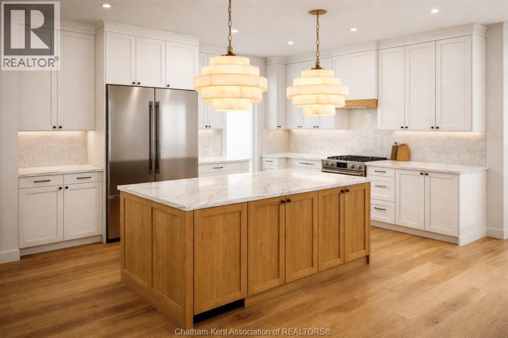 TO BE BUILT, Welcome to this stunning custom-built home by Ewald Custom Homes, where elevated design meets everyday luxury across 2,483SQFT of beautifully finished living space. Tucked away on a private, maturely treed lot, this home delivers the kind of privacy people wish they had—without giving up convenience. Located on the south side of Chatham, this sought-after new development is minutes from all amenities, walking paths, and offers quick access to the 401 (because time matters). Inside, oversized windows flood the home with natural light, showing off warm tones, wide-plank hardwood floors, and thoughtfully curated finishes throughout. The open-concept main floor is made for hosting, featuring a statement kitchen with a large island, walk-in pantry, and seamless flow into the dining and living areas. The fireplace anchors the living room—cozy, polished, and undeniably inviting. Upstairs, you’ll find four generously sized bedrooms, including a dreamy primary retreat with a spa-inspired ensuite complete with a glass-enclosed shower and double vanity. 2.5 bathrooms, timeless design, and quality craftsmanship throughout—no corners cut, no details missed.Private lot. Prime location. Custom quality. This one doesn’t just check boxes—it raises the bar. NOTE: PURCHASE PRICE REFLECTS HST ADJUSTMENT BASED ON THE ONTARIO NEW CONSTRUCTION REBATE FOR AGREEMENTS EXECUTED AFTER APRIL 1, 2026. BUYER MUST QUALIFY UNDER APPLICABLE REBATE REQUIREMENTS. NOTE: Photos are renderings for illustrative purposes only. Finishes, materials, and layout may vary. Buyers to verify selections and specifications with the builder. Call today to #lovewhereyoulive (id:4555)