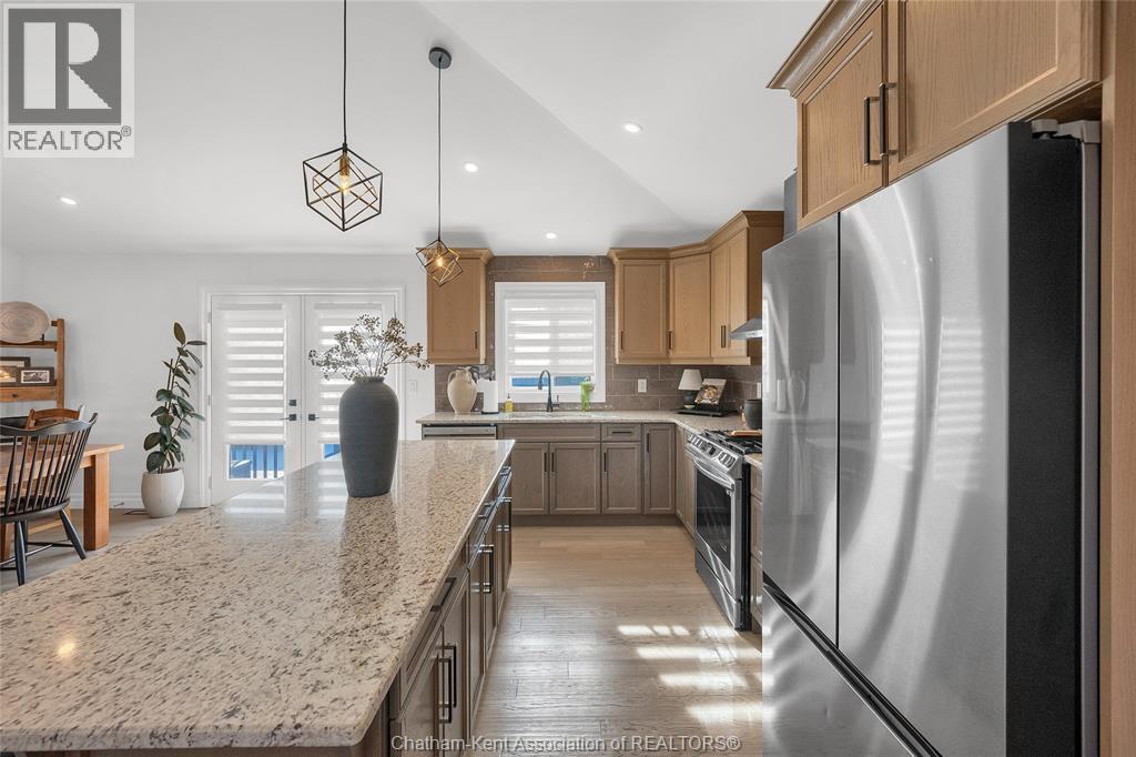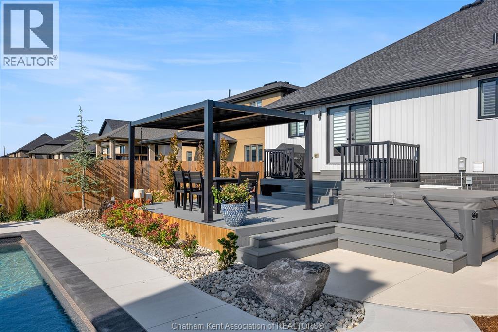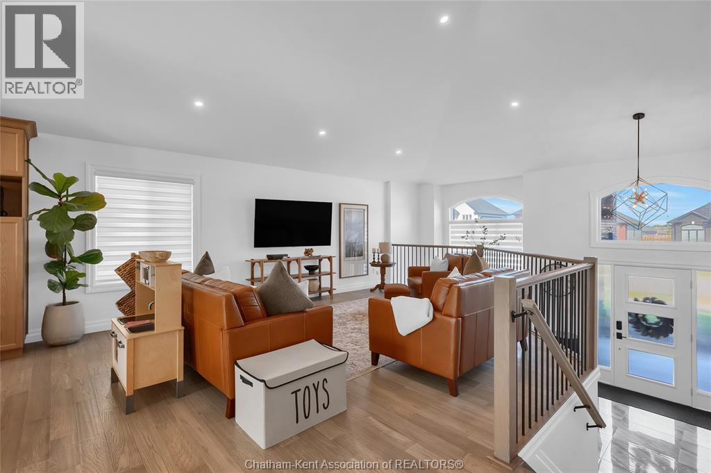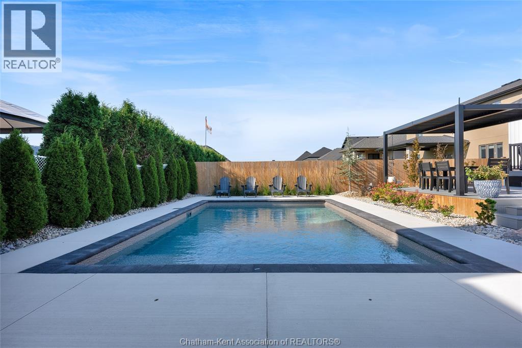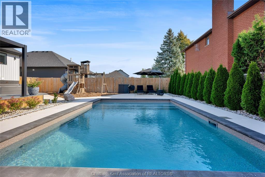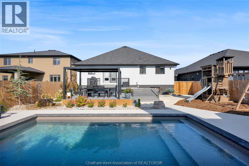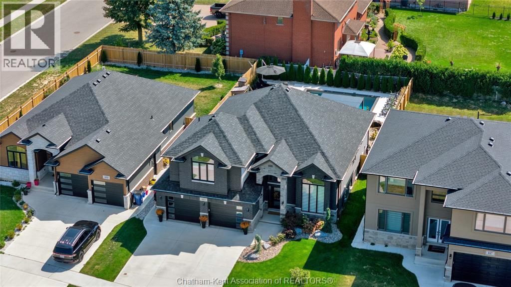 Absolutely immaculate home in one of Chatham's top neighbourhoods! This fully finished raised ranch 5 bedroom home was built in 2022 and has over 3500 sf of finished living space and many updates from new. The main level has an expansive open concept living-dining-kitchen area with vaulted ceilings and upgraded flooring throughout. Main level also has two bedrooms and a 4 pc bathroom. Upstairs is the private primary bedroom suite with vaulted ceiling, large walk-in closet and 5pc ensuite with double vanity, tub and shower. Lower level has a sprawling rec room with gas fireplace, large windows and upgraded flooring. Two additional bedrooms complete the lower level with dedicated 3pc bathroom. Insulated and heated two car garage with inside and exterior entry. Backyard is ready for entertaining with new pool with full width steps, LED lighting, cartridge filter, custom stone coping and heater. Extensive concrete finishing and hardscapes beyond the sprawling multi-level composite deck. No expense spared with several years of work to get to this level of fit and finish. Fully landscaped front yard with underground sprinkler system. This is a large home with room to grow for your family. Quick walk to greenbelt, Indian Creek, St. Teresa or Chatham Christian Schools. Take a closer look at the 360degree iGuide virtual tour with full floor plans. (id:4555)