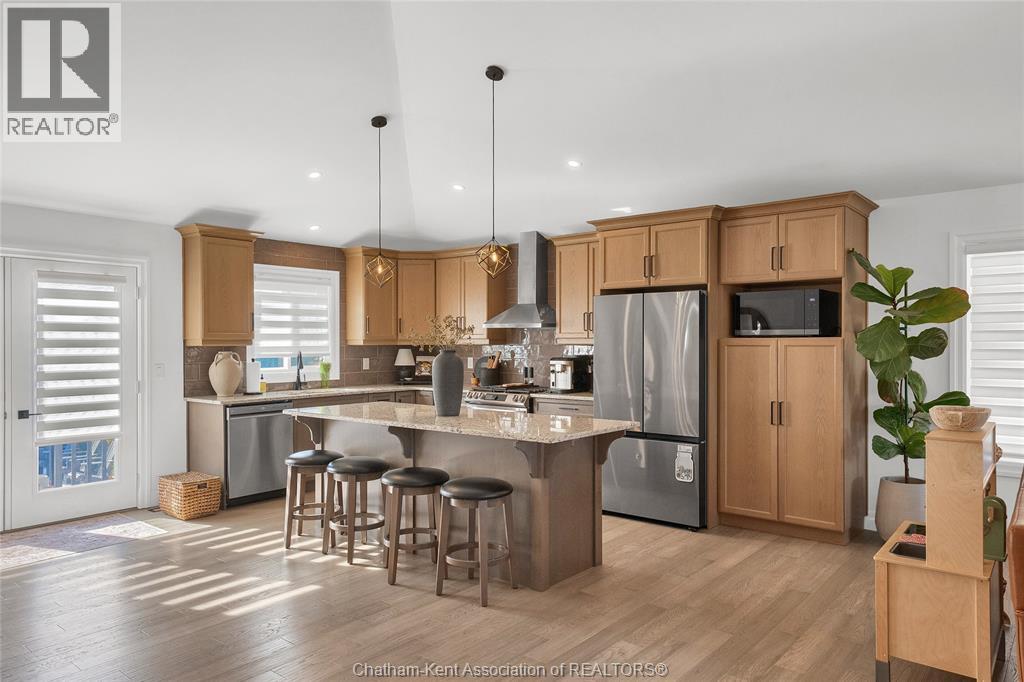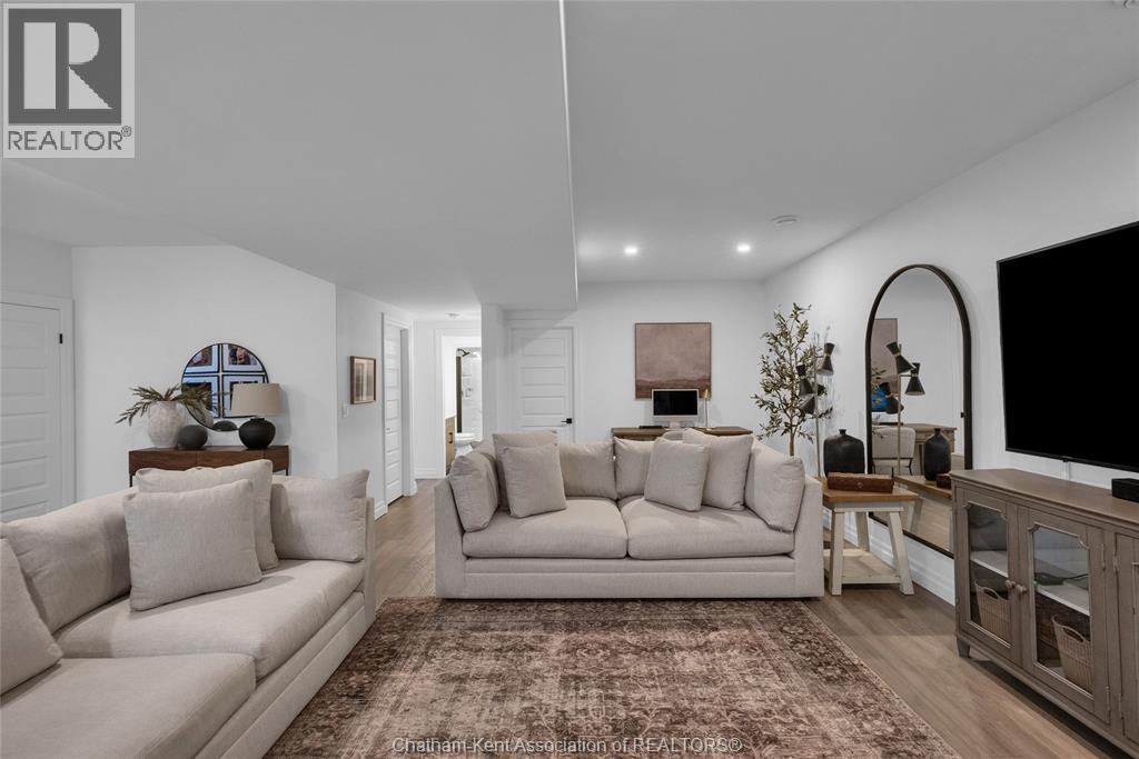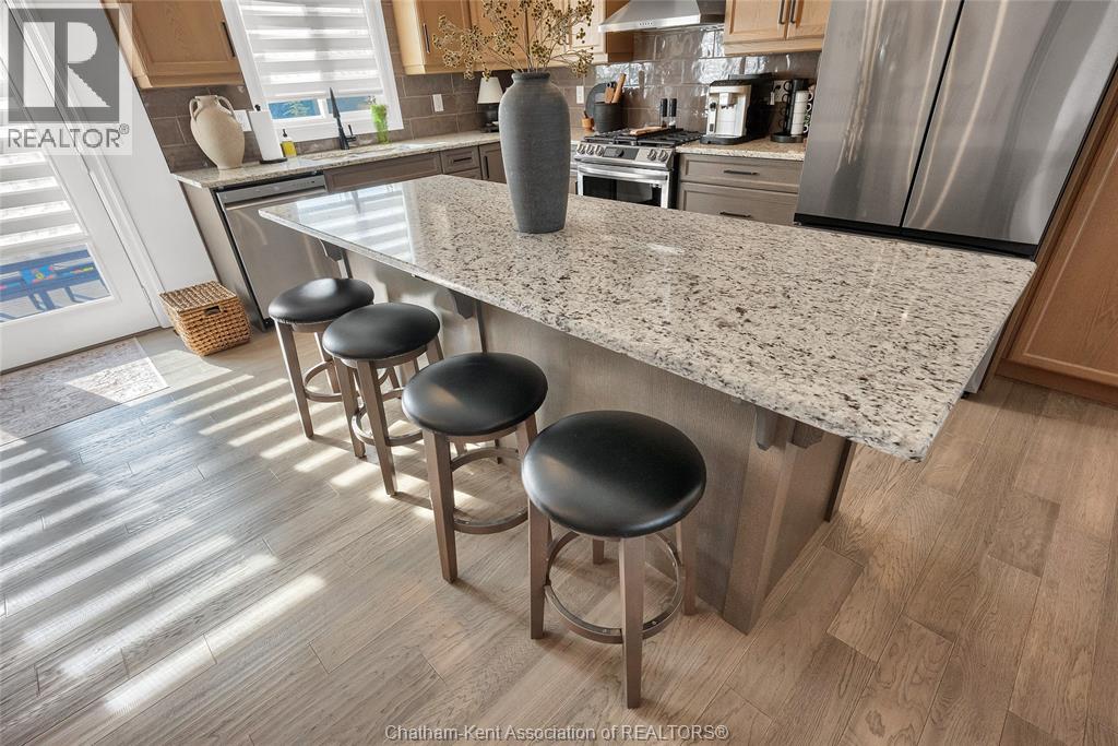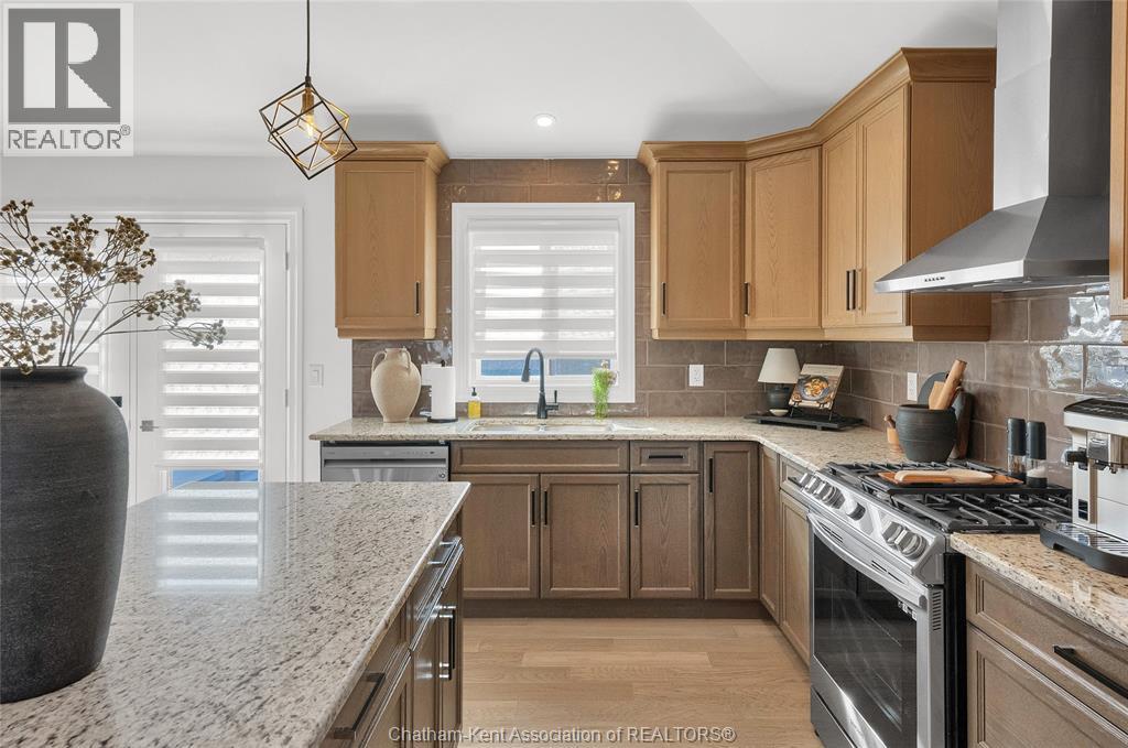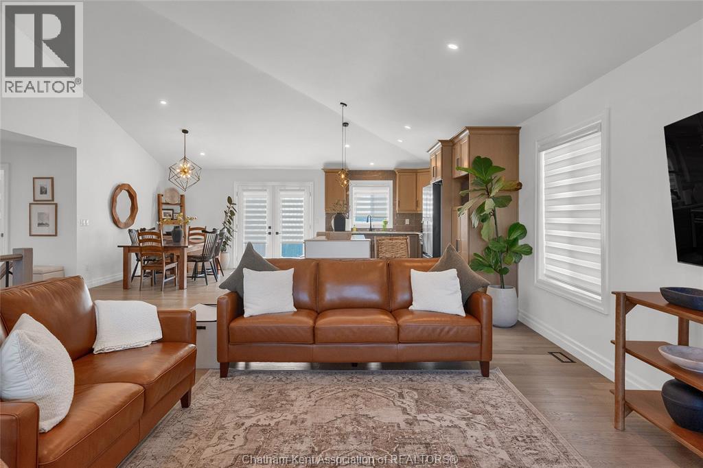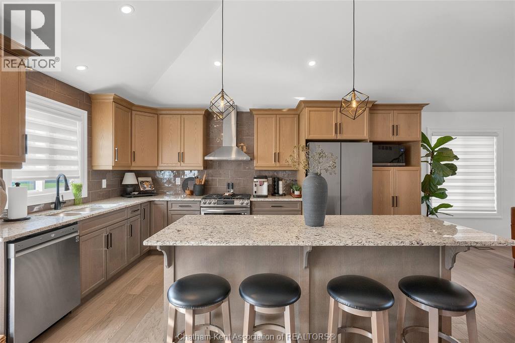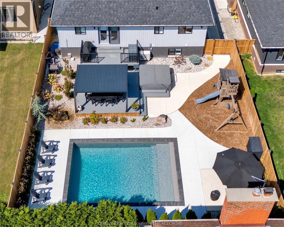 Absolutely immaculate home in one of Chatham's top neighbourhoods! This fully finished raised ranch 5 bedroom home was built in 2022 and has over 3500 sf of finished living space and many updates from new. The main level has an expansive open concept living-dining-kitchen area with vaulted ceilings and upgraded flooring throughout. Main level also has two bedrooms and a 4 pc bathroom. Upstairs is the private primary bedroom suite with vaulted ceiling, large walk-in closet and 5pc ensuite with double vanity, tub and shower. Lower level has a sprawling rec room with gas fireplace, large windows and upgraded flooring. Two additional bedrooms complete the lower level with dedicated 3pc bathroom. Insulated and heated two car garage with inside and exterior entry. Backyard is ready for entertaining with new pool with full width steps, LED lighting, cartridge filter, custom stone coping and heater. Extensive concrete finishing and hardscapes beyond the sprawling multi-level composite deck. No expense spared with several years of work to get to this level of fit and finish. Fully landscaped front yard with underground sprinkler system. This is a large home with room to grow for your family. Quick walk to greenbelt, Indian Creek, St. Teresa or Chatham Christian Schools. Take a closer look at the 360degree iGuide virtual tour with full floor plans. (id:4555)