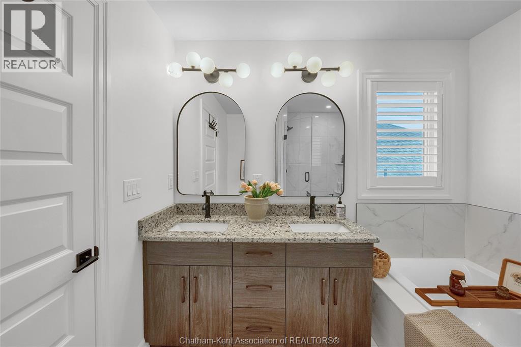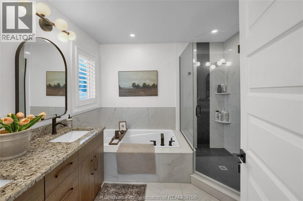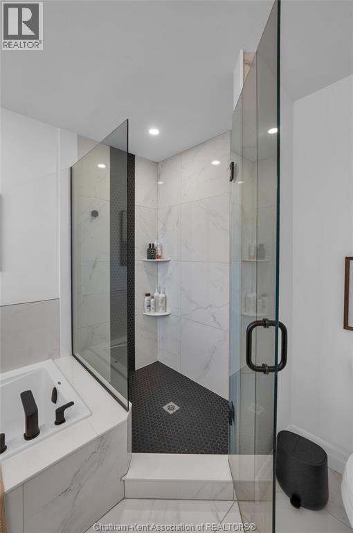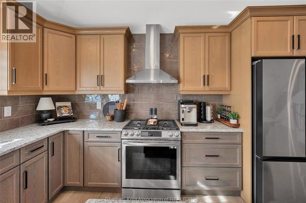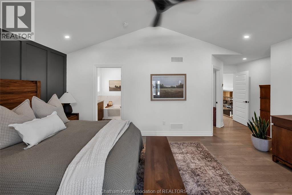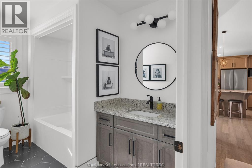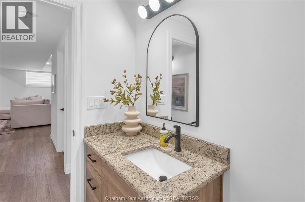 Absolutely immaculate home in one of Chatham's top neighbourhoods! This fully finished raised ranch 5 bedroom home was built in 2022 and has over 3500 sf of finished living space and many updates from new. The main level has an expansive open concept living-dining-kitchen area with vaulted ceilings and upgraded flooring throughout. Main level also has two bedrooms and a 4 pc bathroom. Upstairs is the private primary bedroom suite with vaulted ceiling, large walk-in closet and 5pc ensuite with double vanity, tub and shower. Lower level has a sprawling rec room with gas fireplace, large windows and upgraded flooring. Two additional bedrooms complete the lower level with dedicated 3pc bathroom. Insulated and heated two car garage with inside and exterior entry. Backyard is ready for entertaining with new pool with full width steps, LED lighting, cartridge filter, custom stone coping and heater. Extensive concrete finishing and hardscapes beyond the sprawling multi-level composite deck. No expense spared with several years of work to get to this level of fit and finish. Fully landscaped front yard with underground sprinkler system. This is a large home with room to grow for your family. Quick walk to greenbelt, Indian Creek, St. Teresa or Chatham Christian Schools. Take a closer look at the 360degree iGuide virtual tour with full floor plans. (id:4555)