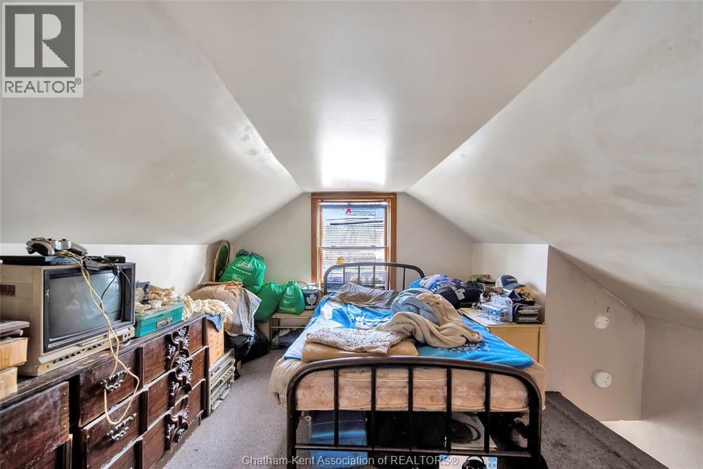 One floor living made easy in this affordable 1.5 storey home in Chatham. The main floor consists of a family room, living room, full bath, kitchen, bedroom and laundry. Upstairs you'll find extra space which could be used as storage, a bedroom or den. Outside features a large backyard over 200 feet deep! With the metal roof you'll never have to replace shingles again. Currently rented to long term tenants paying $1000 plus utilities. 36-48 hours required for showings. (id:4555)