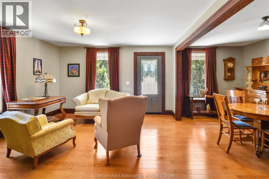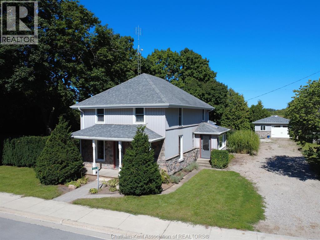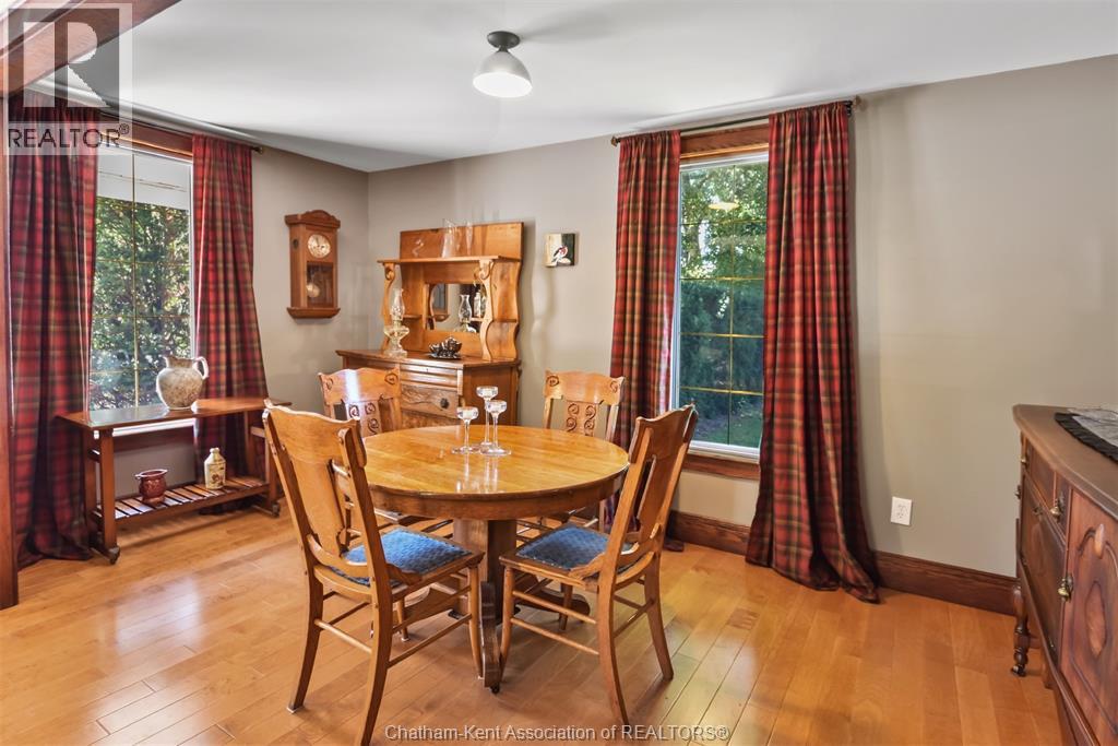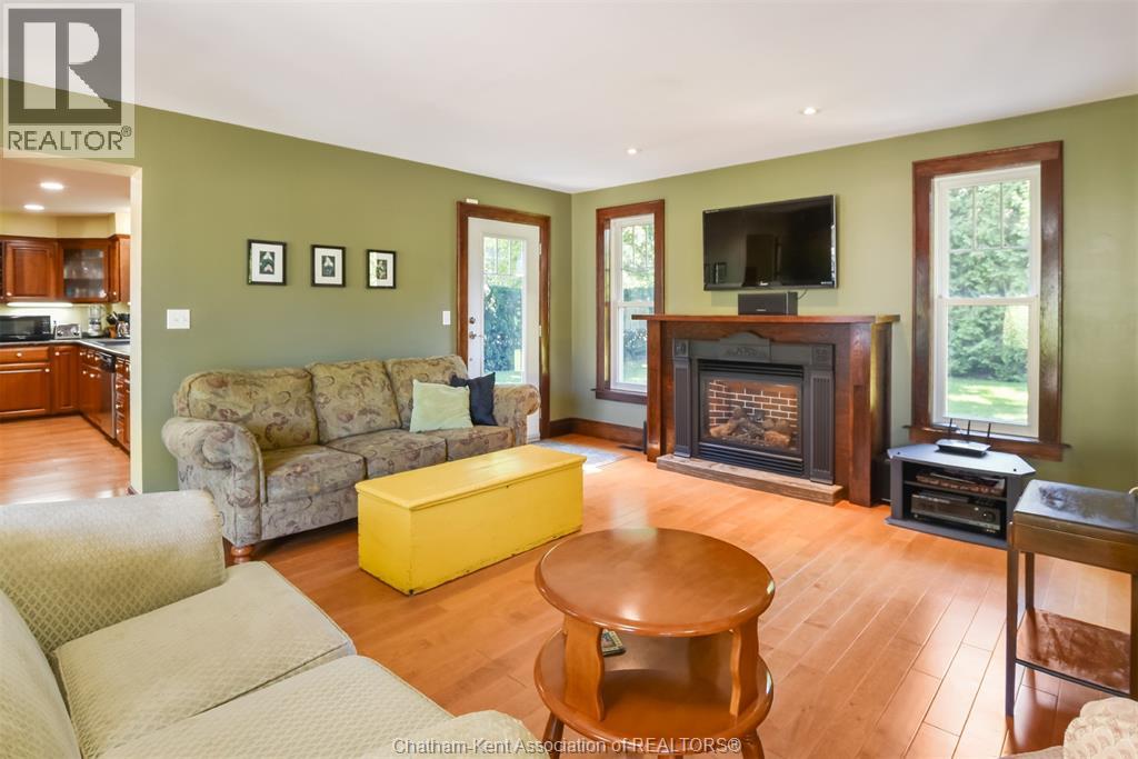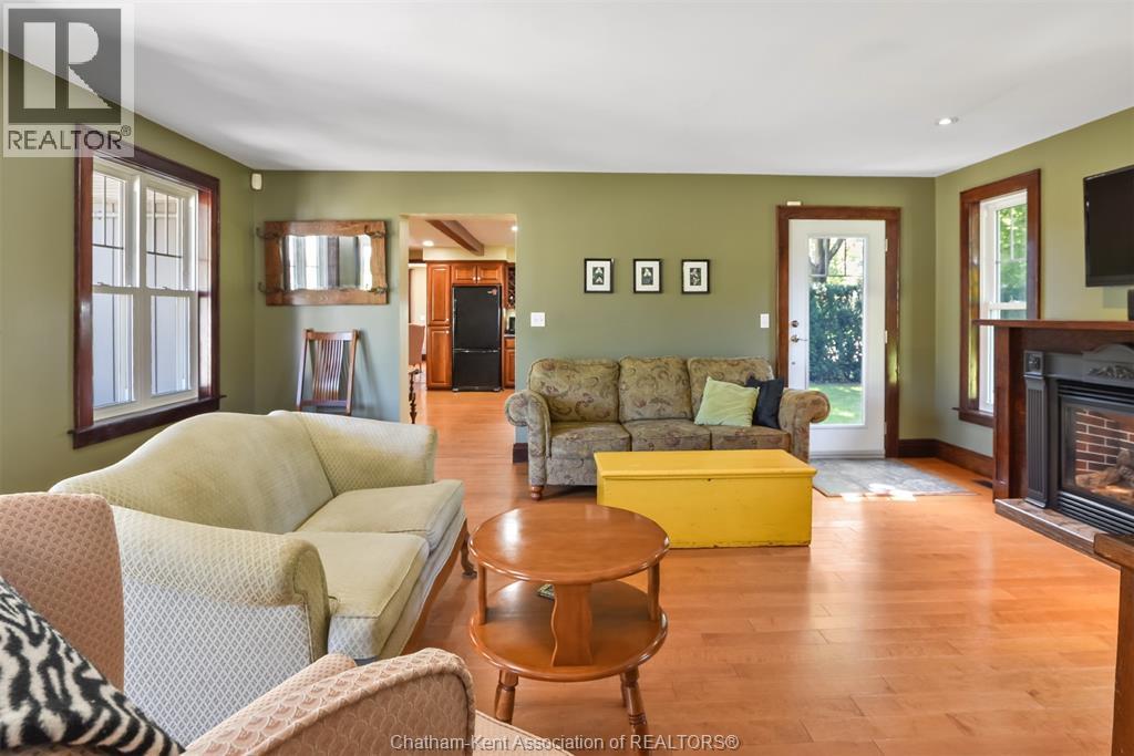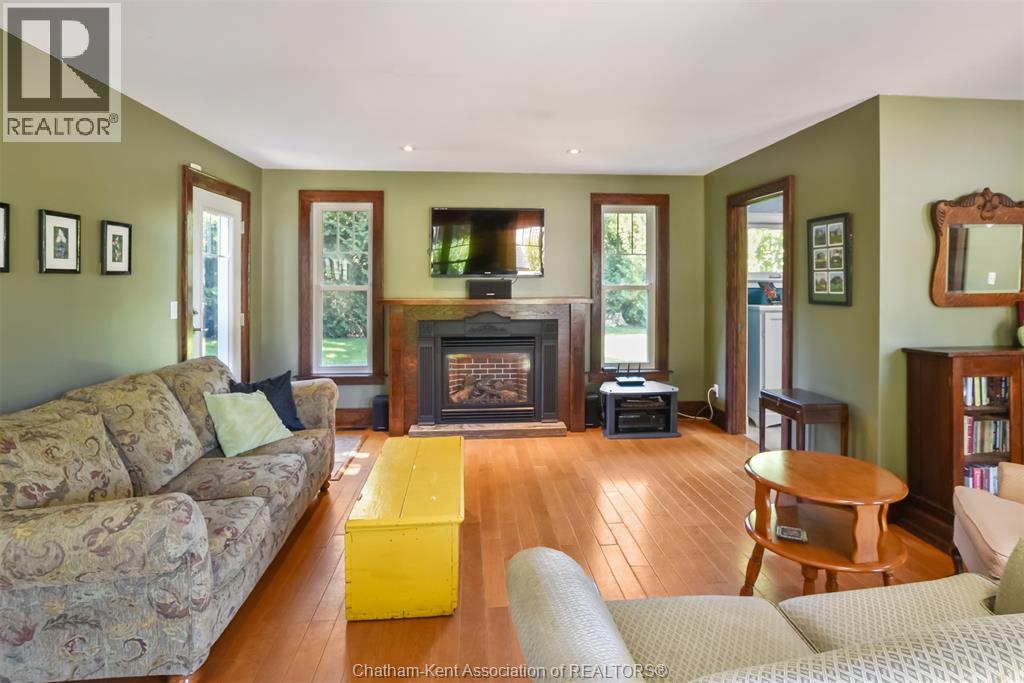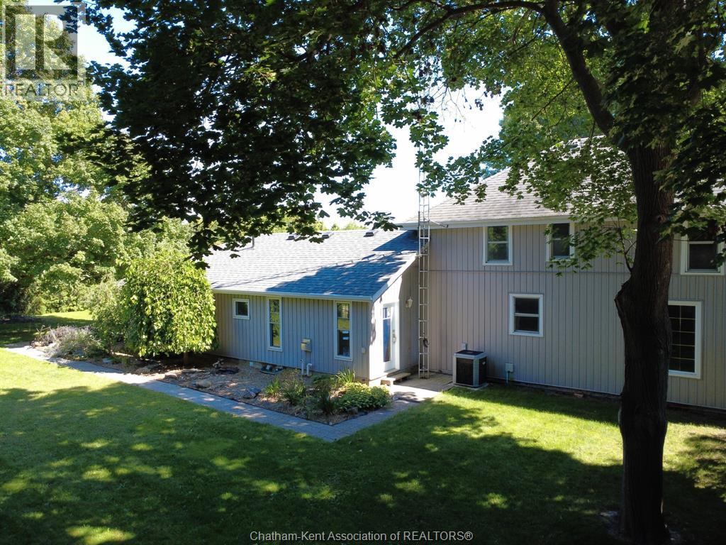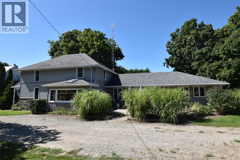 Advertisements often say ""great family home"" - This offering in Louisville can back that claim. Country farmhouse charm and a beautiful addition are the perfect combination for this 5 bedroom, 3 bath beauty. A 2 storey home with the benefit of a 15 yr old family room addition (fireplace), 3pc full bath, main floor primary bedroom complete with a terrific ensuite and walk-in closet. Large eat-in kitchen with cherry cabinets, front living in the original section with natural trim and formal dining. Side entry into an office area or excellent space for a mudroom. Upper level with 4 bedrooms and 3 pc bath with clawfoot tube. New basement under the addition provides for storage/hobby room, laundry with tankless water heater, forced air gas furnace and ac. Hardwood and ceramic flooring, decor that suits the character, updated plumbing, insulation and wiring this home has been well updated and cared for. The nearly half acre site is only 8km to the City of Chatham and has cedar and mature trees backing onto farmland for additional privacy. Interlocking brick patio area located from the patio doors plus a secluded firepit area in the back corner of the lot. 19' x 29' attached garage or workshop is heated and insulated. This home has over 2200 square feet and the additional rooms on the main level really enhance this wonderful home. Additional Information - gas budget $108 (also heats the shop), water and hydro $187 average in 2024 and at that time for a family of 7. This is an efficient home and also consider in-law suite possibilities for the main level addition master bedroom, ensuite, livingroom and share the kitchen would be ideal for an elderly parent for example. (id:4555)