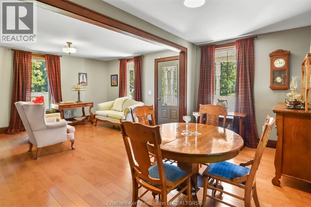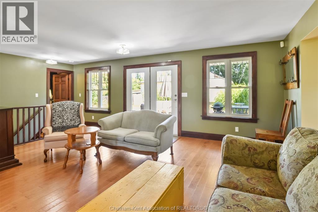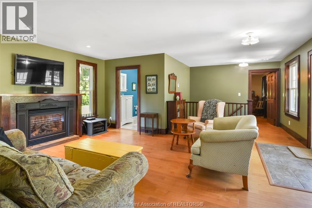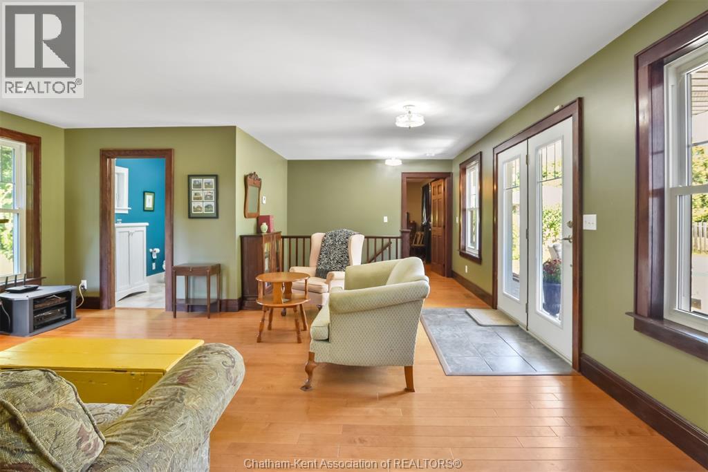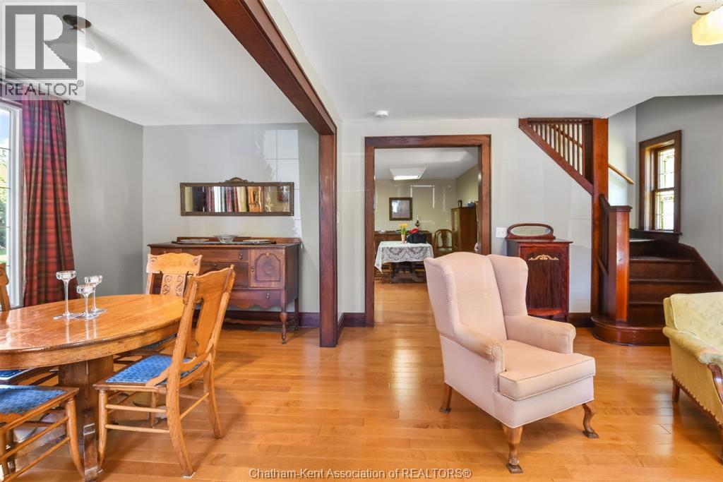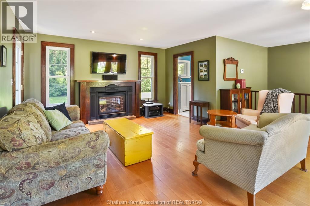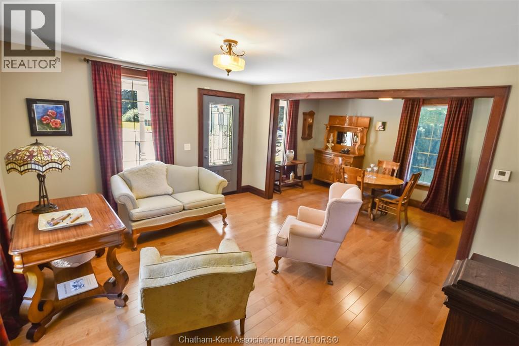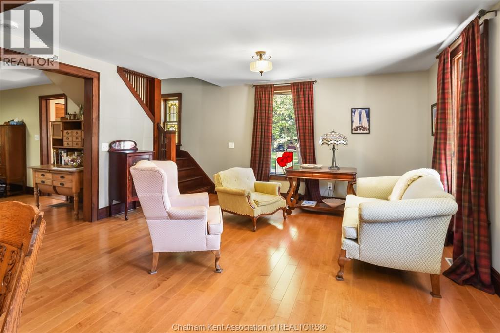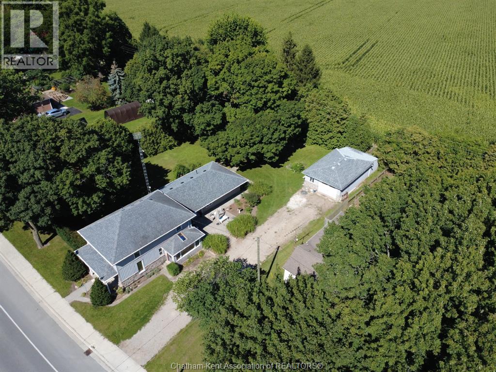 Advertisements often say ""great family home"" - This offering in Louisville can back that claim. Country farmhouse charm and a beautiful addition are the perfect combination for this 5 bedroom, 3 bath beauty. A 2 storey home with the benefit of a 15 yr old family room addition (fireplace), 3pc full bath, main floor primary bedroom complete with a terrific ensuite and walk-in closet. Large eat-in kitchen with cherry cabinets, front living in the original section with natural trim and formal dining. Side entry into an office area or excellent space for a mudroom. Upper level with 4 bedrooms and 3 pc bath with clawfoot tube. New basement under the addition provides for storage/hobby room, laundry with tankless water heater, forced air gas furnace and ac. Hardwood and ceramic flooring, decor that suits the character, updated plumbing, insulation and wiring this home has been well updated and cared for. The nearly half acre site is only 8km to the City of Chatham and has cedar and mature trees backing onto farmland for additional privacy. Interlocking brick patio area located from the patio doors plus a secluded firepit area in the back corner of the lot. 19' x 29' attached garage or workshop is heated and insulated. This home has over 2200 square feet and the additional rooms on the main level really enhance this wonderful home. Additional Information - gas budget $108 (also heats the shop), water and hydro $187 average in 2024 and at that time for a family of 7. This is an efficient home and also consider in-law suite possibilities for the main level addition master bedroom, ensuite, livingroom and share the kitchen would be ideal for an elderly parent for example. (id:4555)