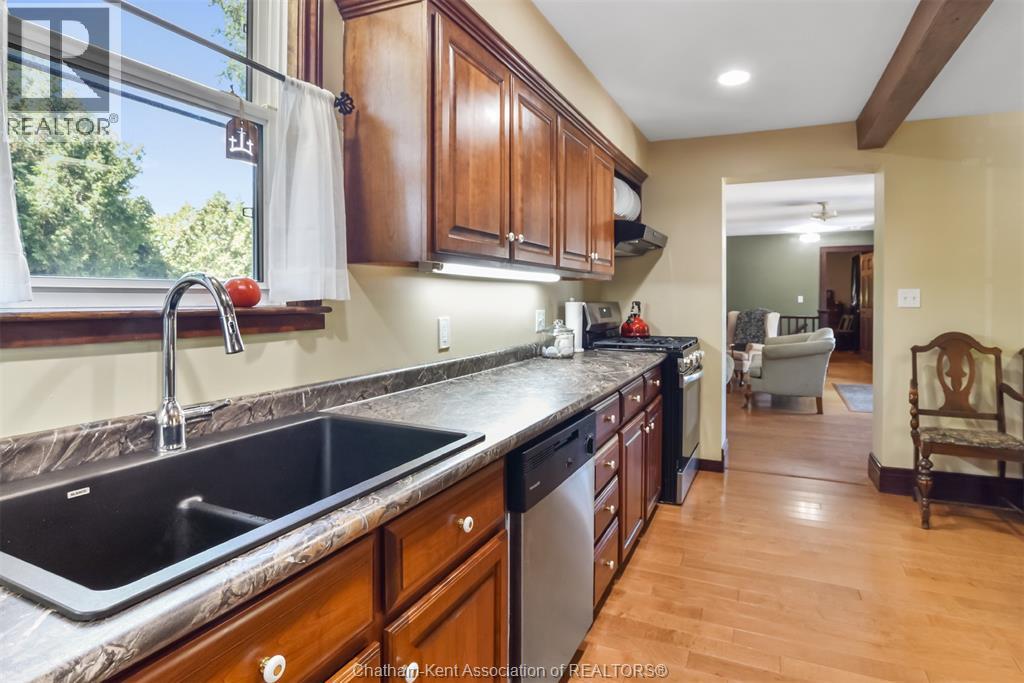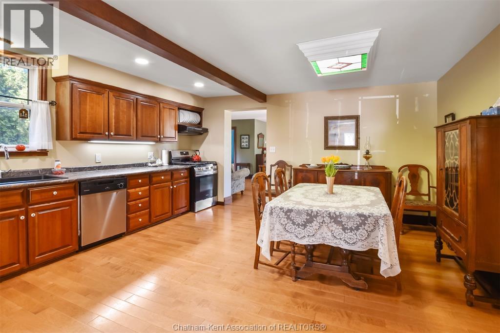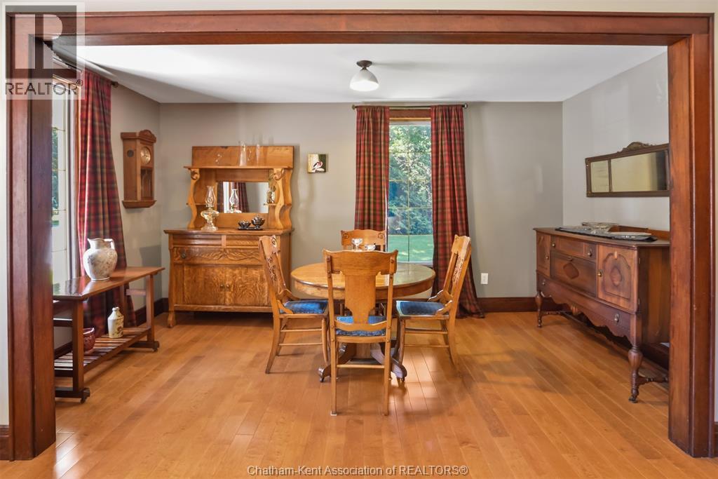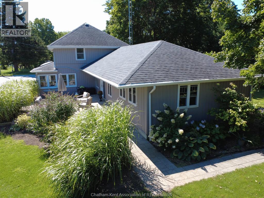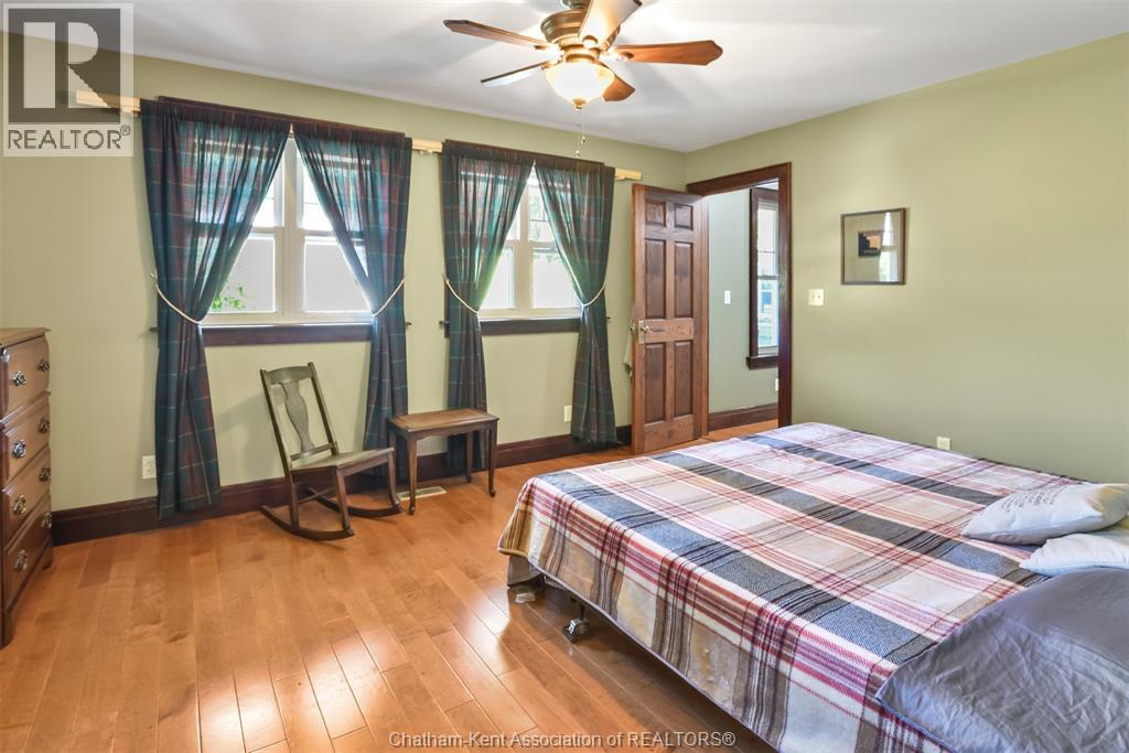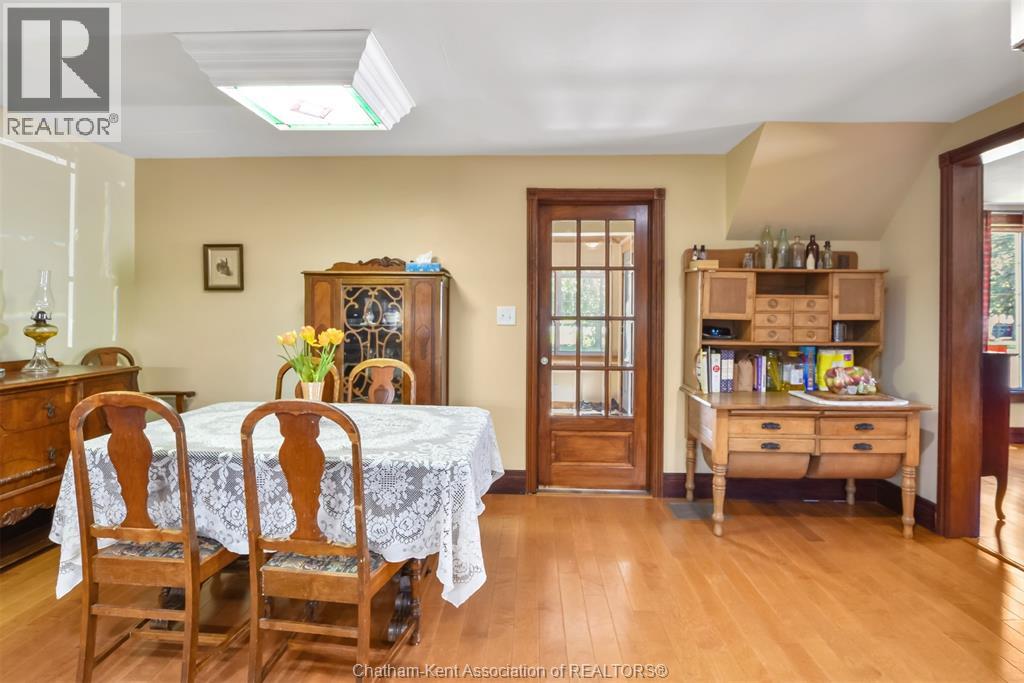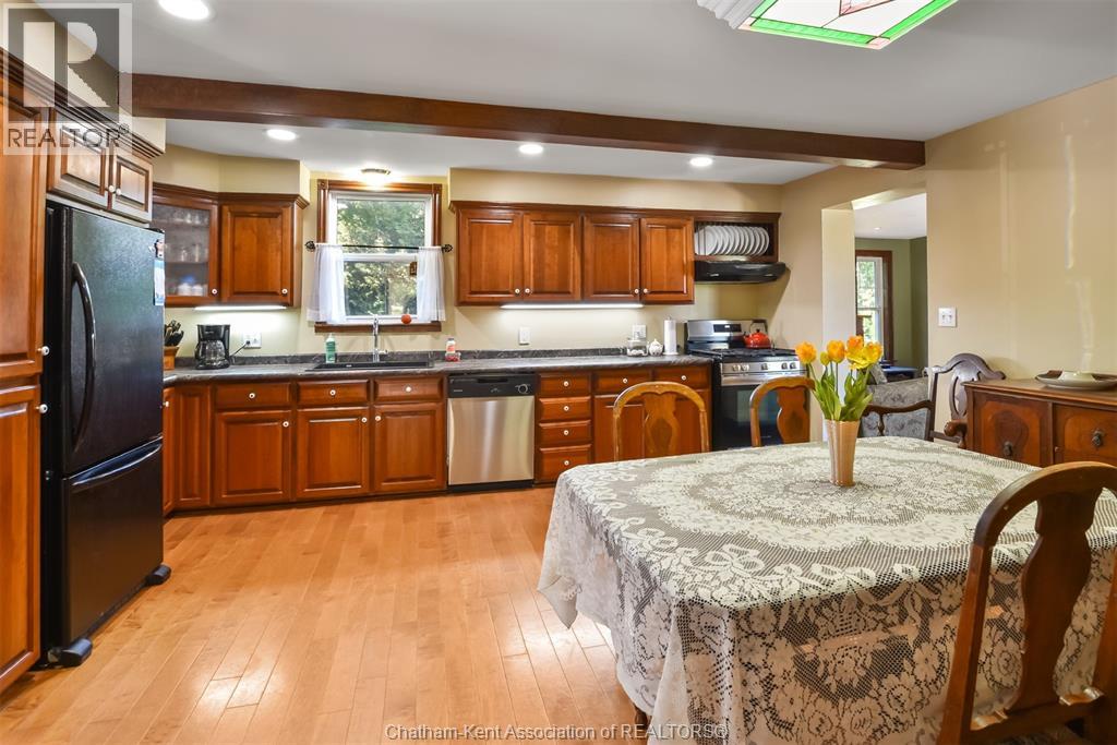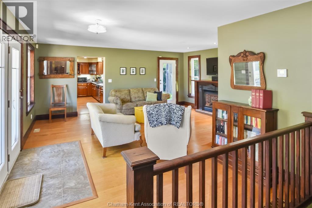 Advertisements often say ""great family home"" - This offering in Louisville can back that claim. Country farmhouse charm and a beautiful addition are the perfect combination for this 5 bedroom, 3 bath beauty. A 2 storey home with the benefit of a 15 yr old family room addition (fireplace), 3pc full bath, main floor primary bedroom complete with a terrific ensuite and walk-in closet. Large eat-in kitchen with cherry cabinets, front living in the original section with natural trim and formal dining. Side entry into an office area or excellent space for a mudroom. Upper level with 4 bedrooms and 3 pc bath with clawfoot tube. New basement under the addition provides for storage/hobby room, laundry with tankless water heater, forced air gas furnace and ac. Hardwood and ceramic flooring, decor that suits the character, updated plumbing, insulation and wiring this home has been well updated and cared for. The nearly half acre site is only 8km to the City of Chatham and has cedar and mature trees backing onto farmland for additional privacy. Interlocking brick patio area located from the patio doors plus a secluded firepit area in the back corner of the lot. 19' x 29' attached garage or workshop is heated and insulated. This home has over 2200 square feet and the additional rooms on the main level really enhance this wonderful home. Additional Information - gas budget $108 (also heats the shop), water and hydro $187 average in 2024 and at that time for a family of 7. This is an efficient home and also consider in-law suite possibilities for the main level addition master bedroom, ensuite, livingroom and share the kitchen would be ideal for an elderly parent for example. (id:4555)