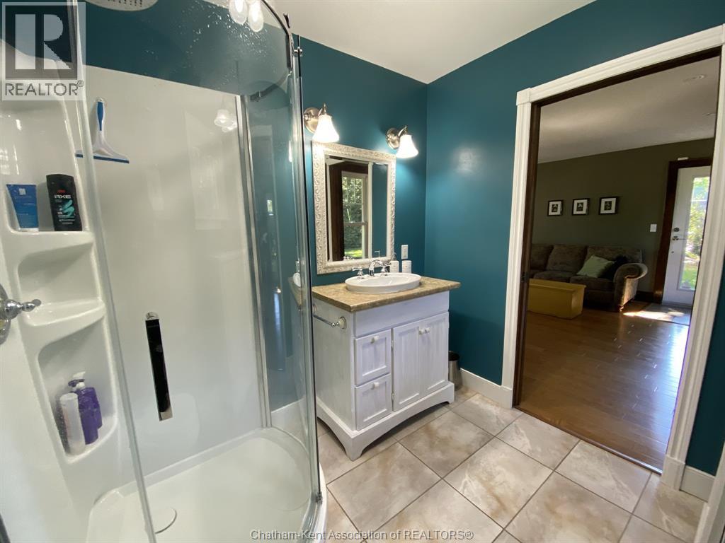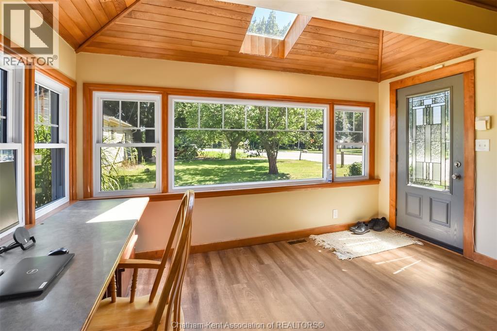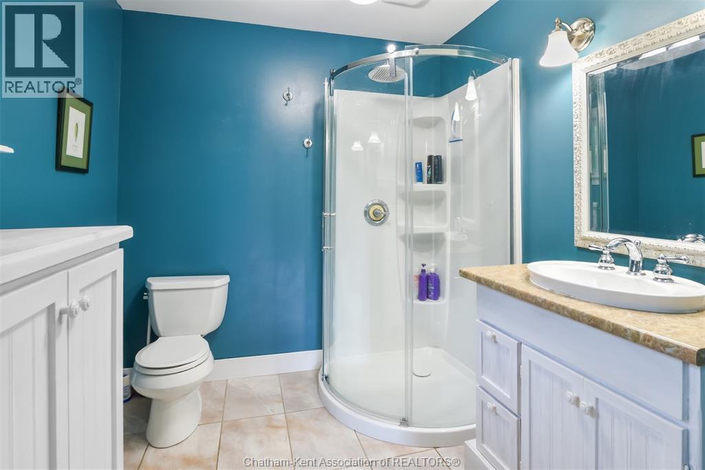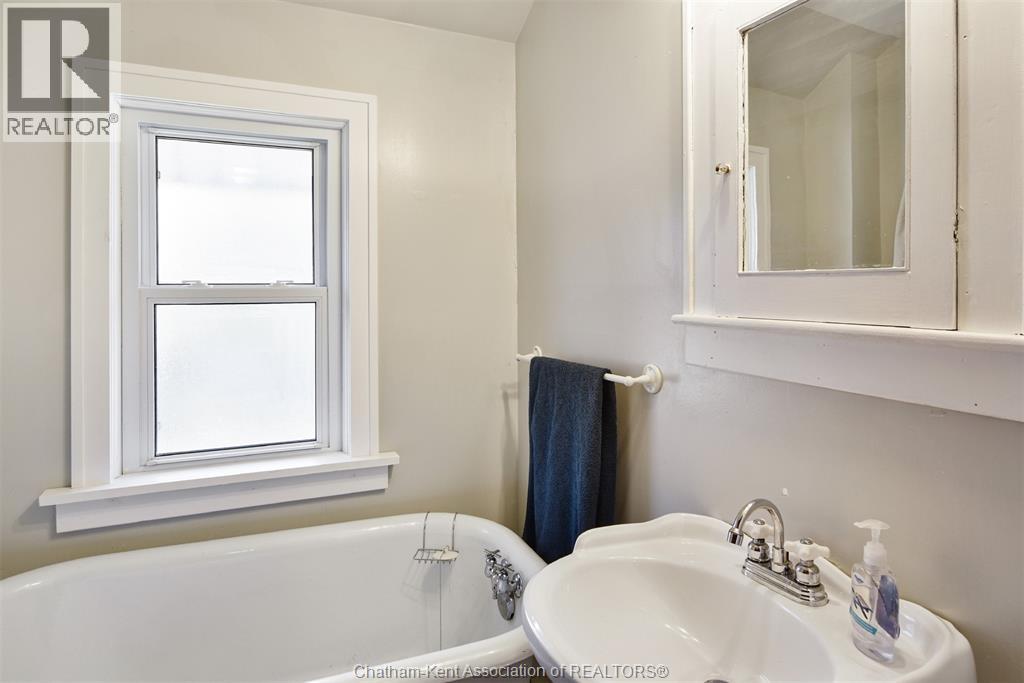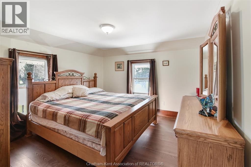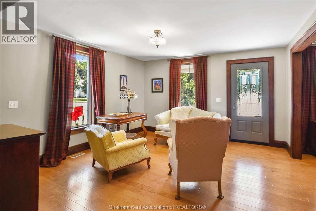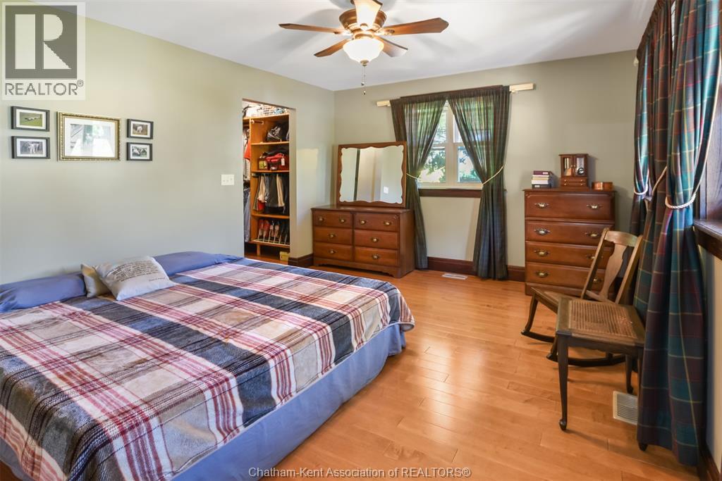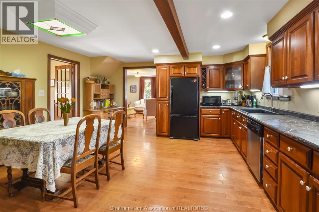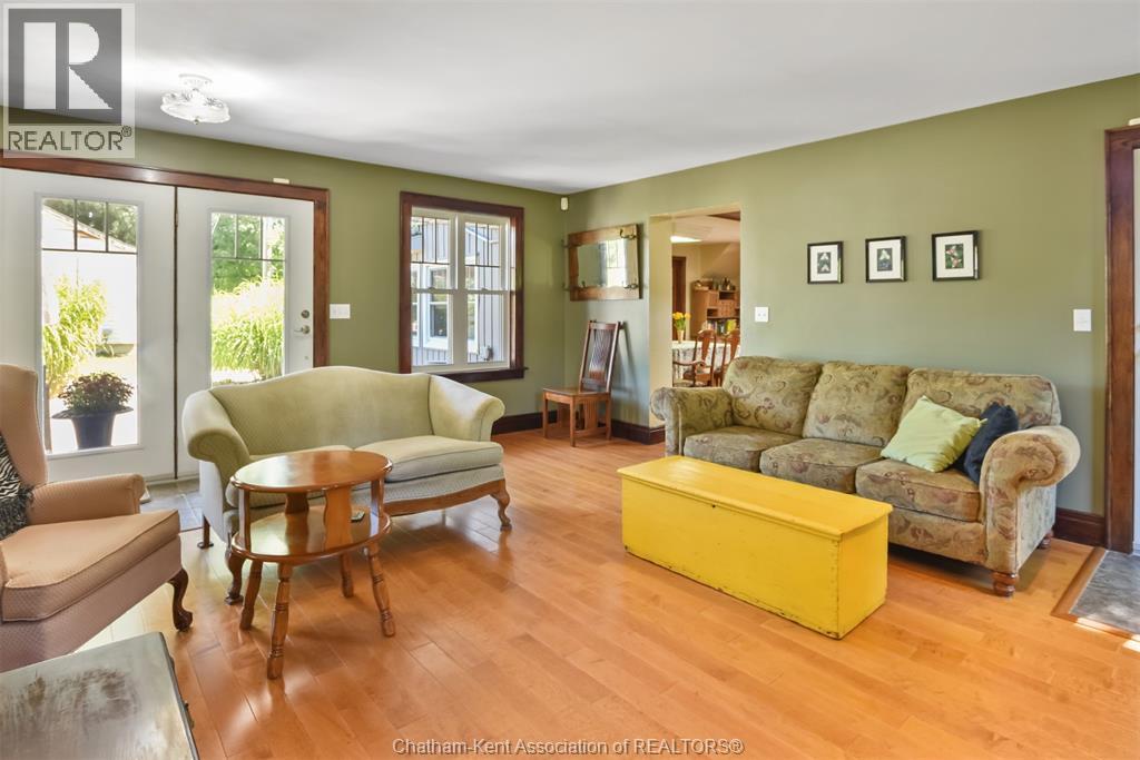 Advertisements often say ""great family home"" - This offering in Louisville can back that claim. Country farmhouse charm and a beautiful addition are the perfect combination for this 5 bedroom, 3 bath beauty. A 2 storey home with the benefit of a 15 yr old family room addition (fireplace), 3pc full bath, main floor primary bedroom complete with a terrific ensuite and walk-in closet. Large eat-in kitchen with cherry cabinets, front living in the original section with natural trim and formal dining. Side entry into an office area or excellent space for a mudroom. Upper level with 4 bedrooms and 3 pc bath with clawfoot tube. New basement under the addition provides for storage/hobby room, laundry with tankless water heater, forced air gas furnace and ac. Hardwood and ceramic flooring, decor that suits the character, updated plumbing, insulation and wiring this home has been well updated and cared for. The nearly half acre site is only 8km to the City of Chatham and has cedar and mature trees backing onto farmland for additional privacy. Interlocking brick patio area located from the patio doors plus a secluded firepit area in the back corner of the lot. 19' x 29' attached garage or workshop is heated and insulated. This home has over 2200 square feet and the additional rooms on the main level really enhance this wonderful home. Additional Information - gas budget $108 (also heats the shop), water and hydro $187 average in 2024 and at that time for a family of 7. This is an efficient home and also consider in-law suite possibilities for the main level addition master bedroom, ensuite, livingroom and share the kitchen would be ideal for an elderly parent for example. (id:4555)