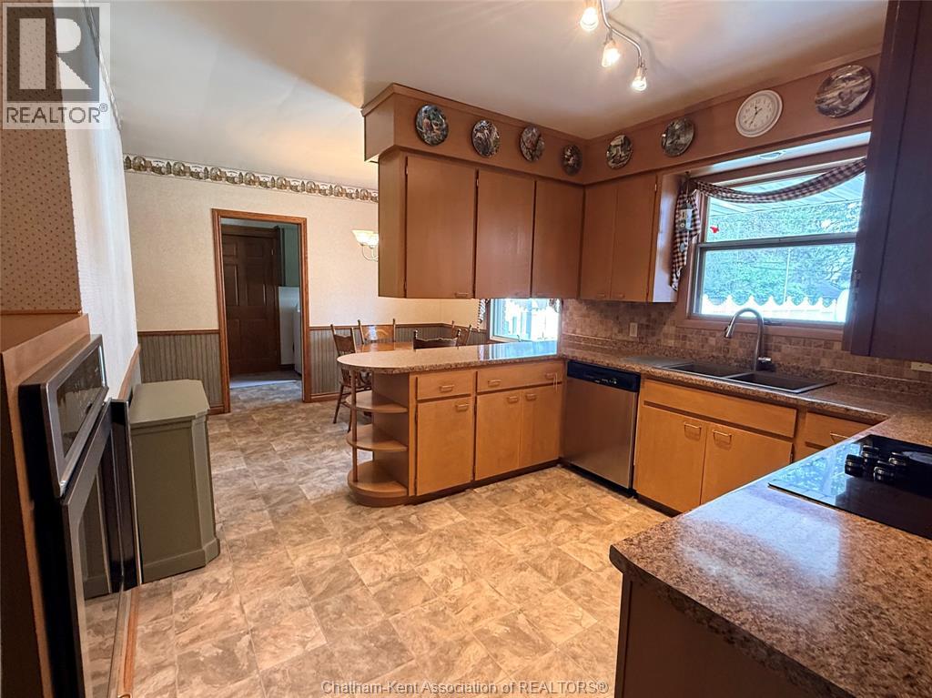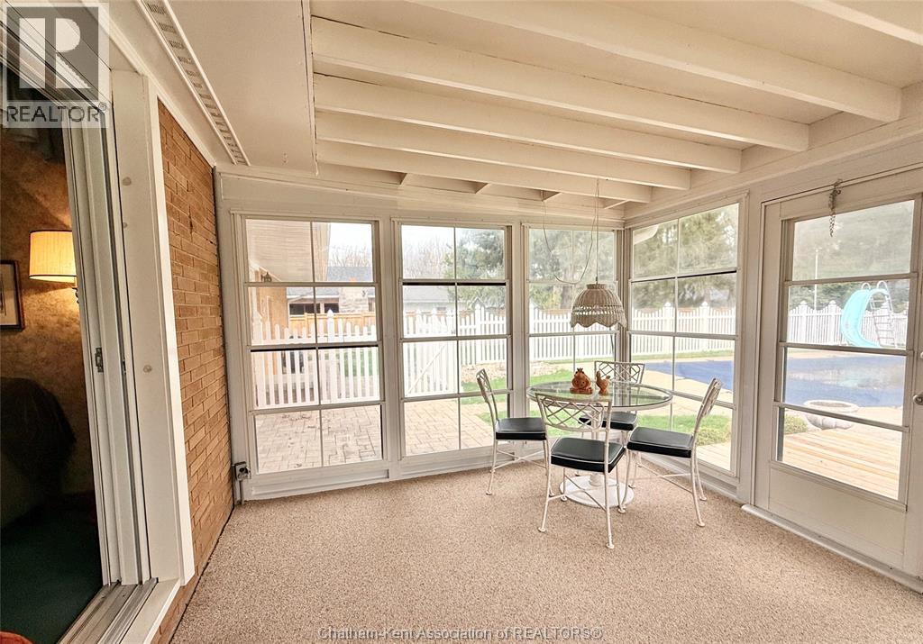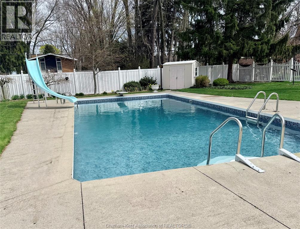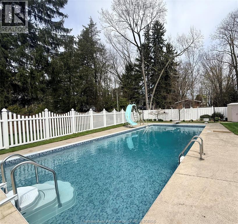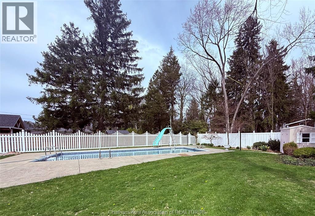 Pristine & solid ranch home offered for the first time since the 60's. Fantastic location, on the southern edge of the city of Chatham, this home sits on an extra large, manicured lot with gardens, mature trees and vinyl fenced pool. The pool features newer liner and pump. Inside you'll discover a well appointed layout with smart design and generous proportions. Big and bright windows throughout. 3 big bedrooms and 3 baths. Primary bedroom ft. ensuite with roomy shower, double sinks & double closets. Main floor laundry. Well appointed kitchen with newer appliances & wall oven. Cozy family room with double sided fireplace leads out to a spectacular sunroom. Attached double garage with plenty of room for vehicles and storage with access to rear yard, front yard and house. Full basement with high ceilings, massive stoarge/utility room or potential to create more living space. This is truly a gem waiting for you to enjoy. Call/ text/ email today for your private viewing. (id:4555)